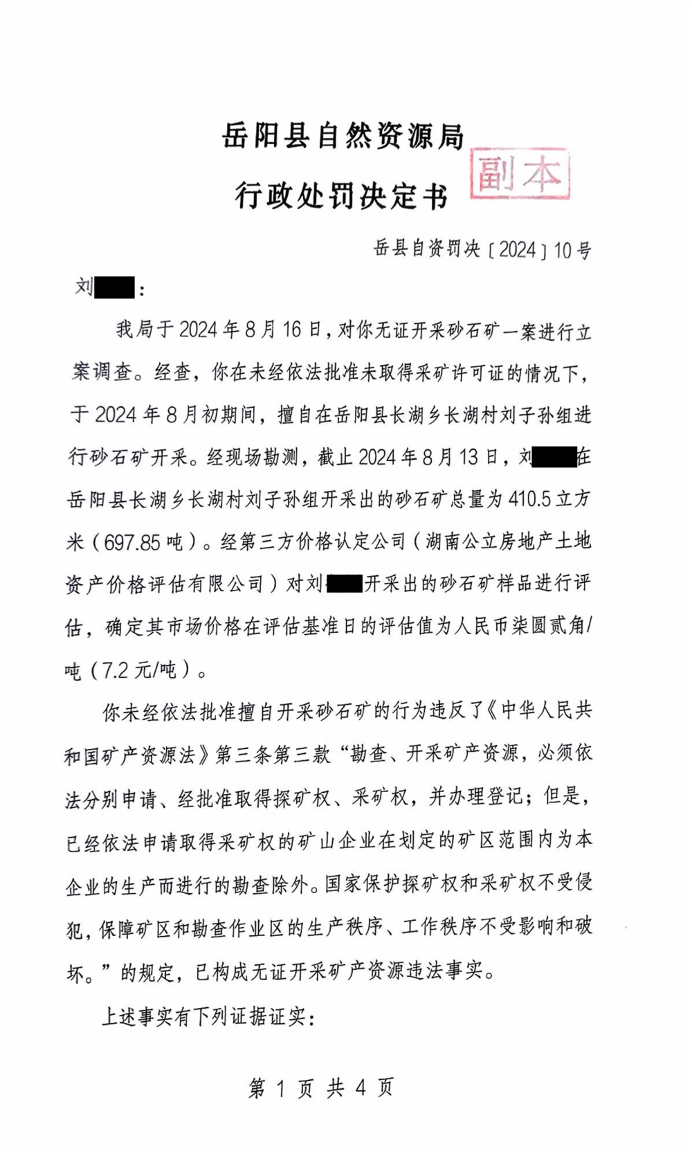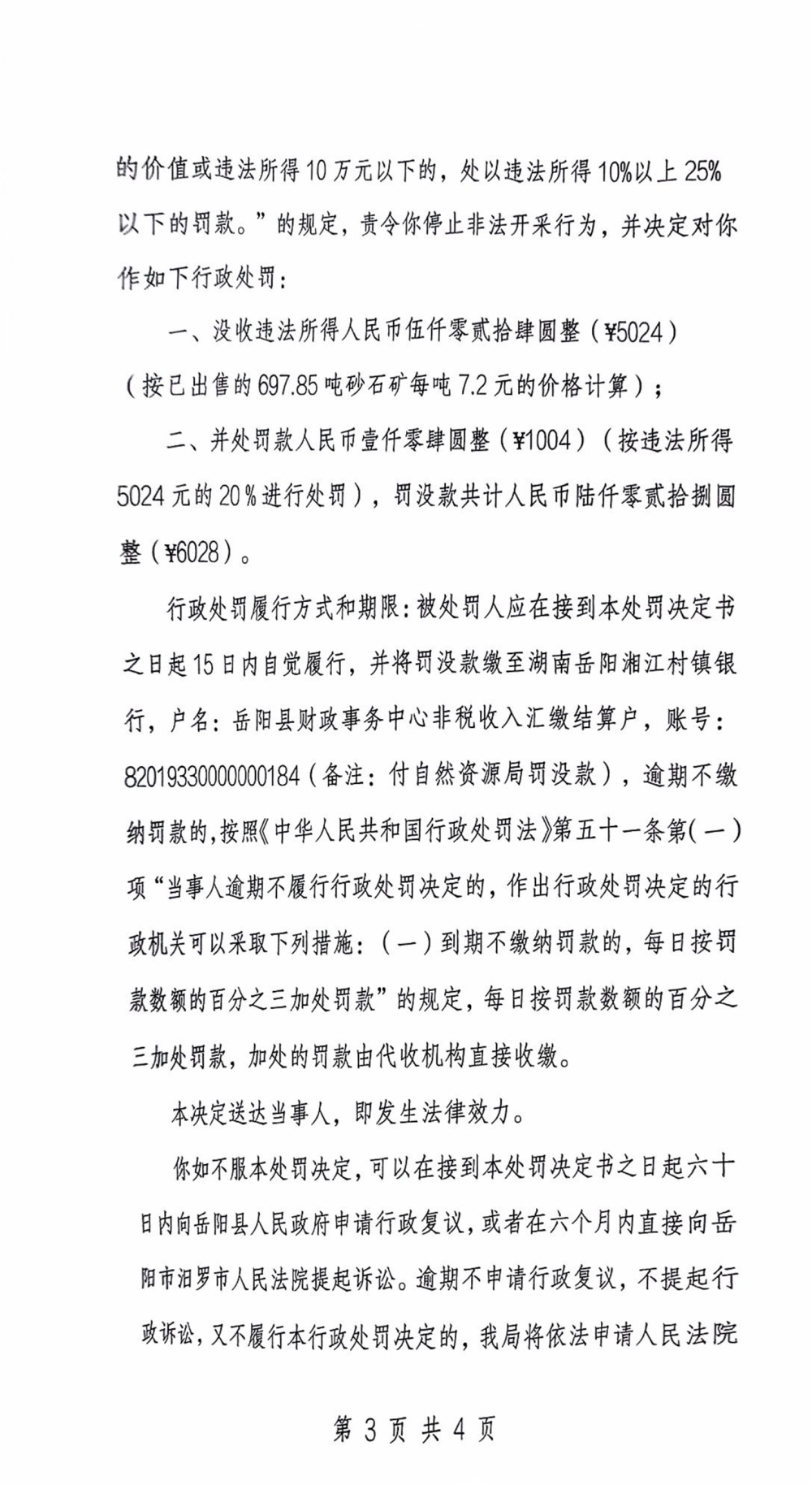 行政處罰決定書 嶽縣自然資罰決〔2024〕第10號