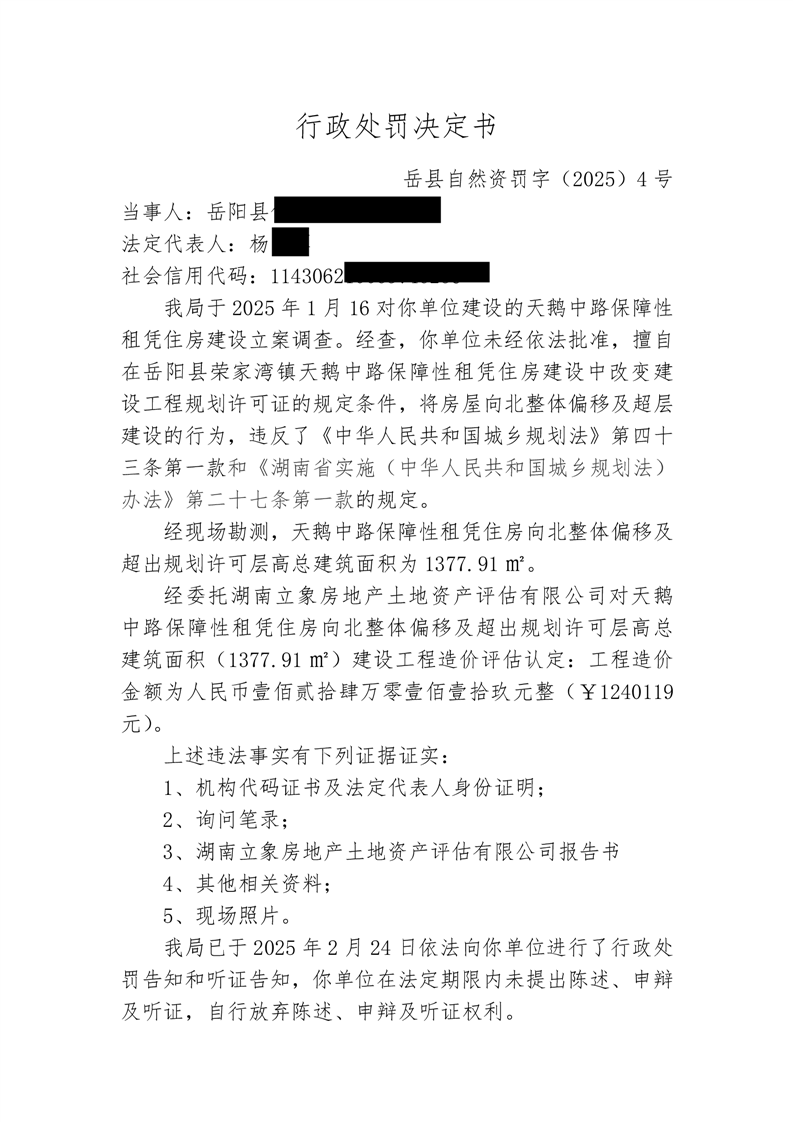 行政處罰決定書 嶽縣自然資罰字〔2025〕4 號