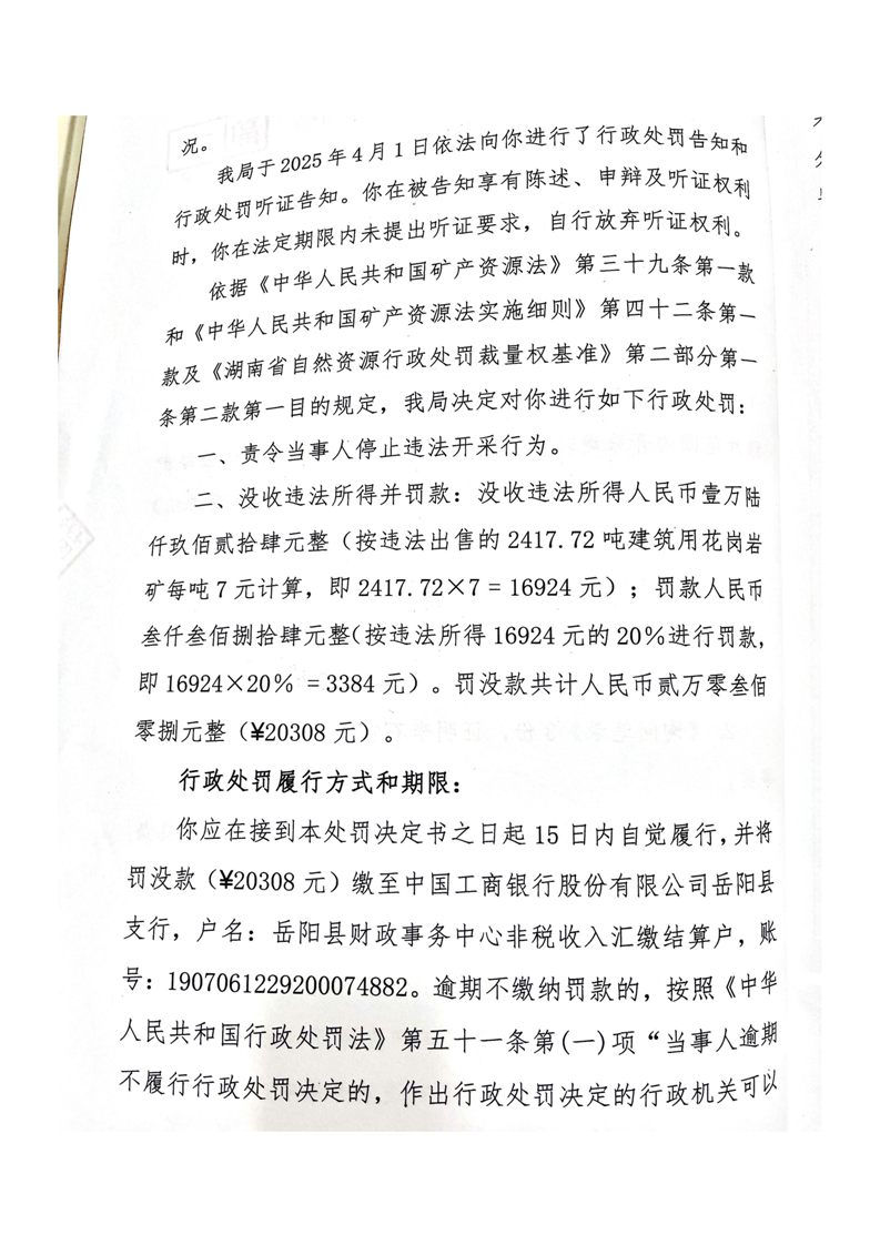 行政處罰決定書嶽縣自然資罰字(2025)8號