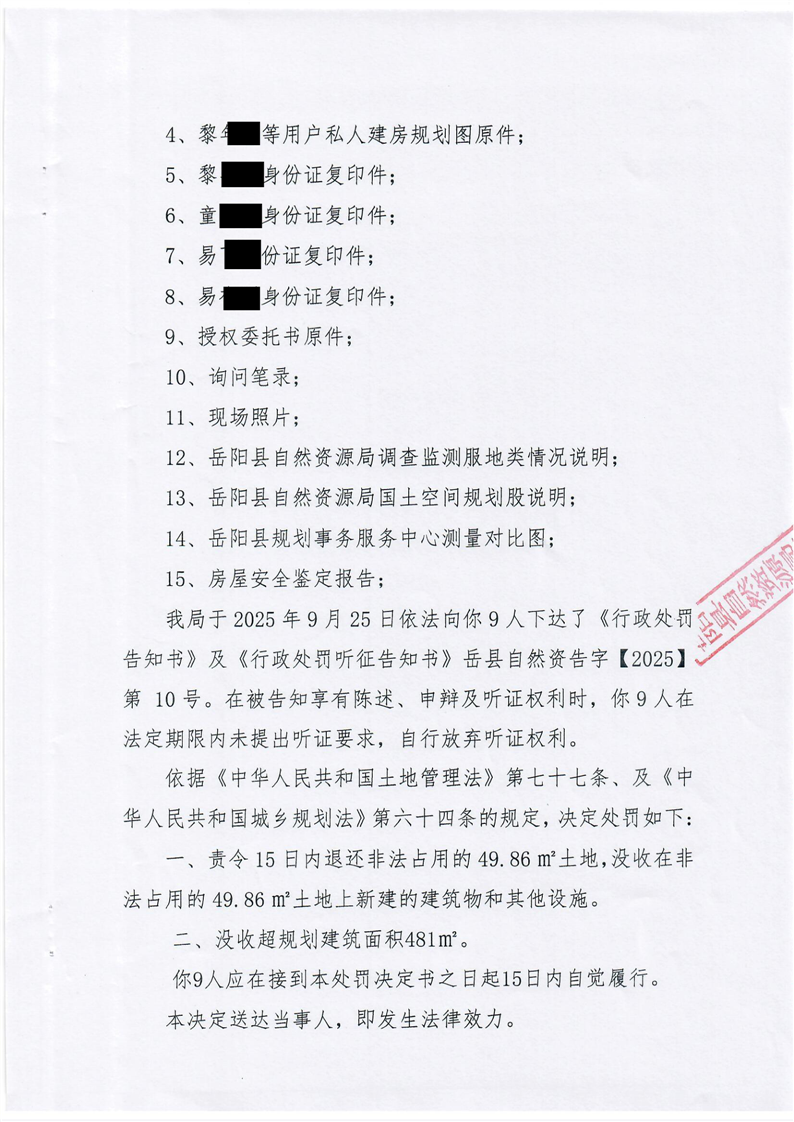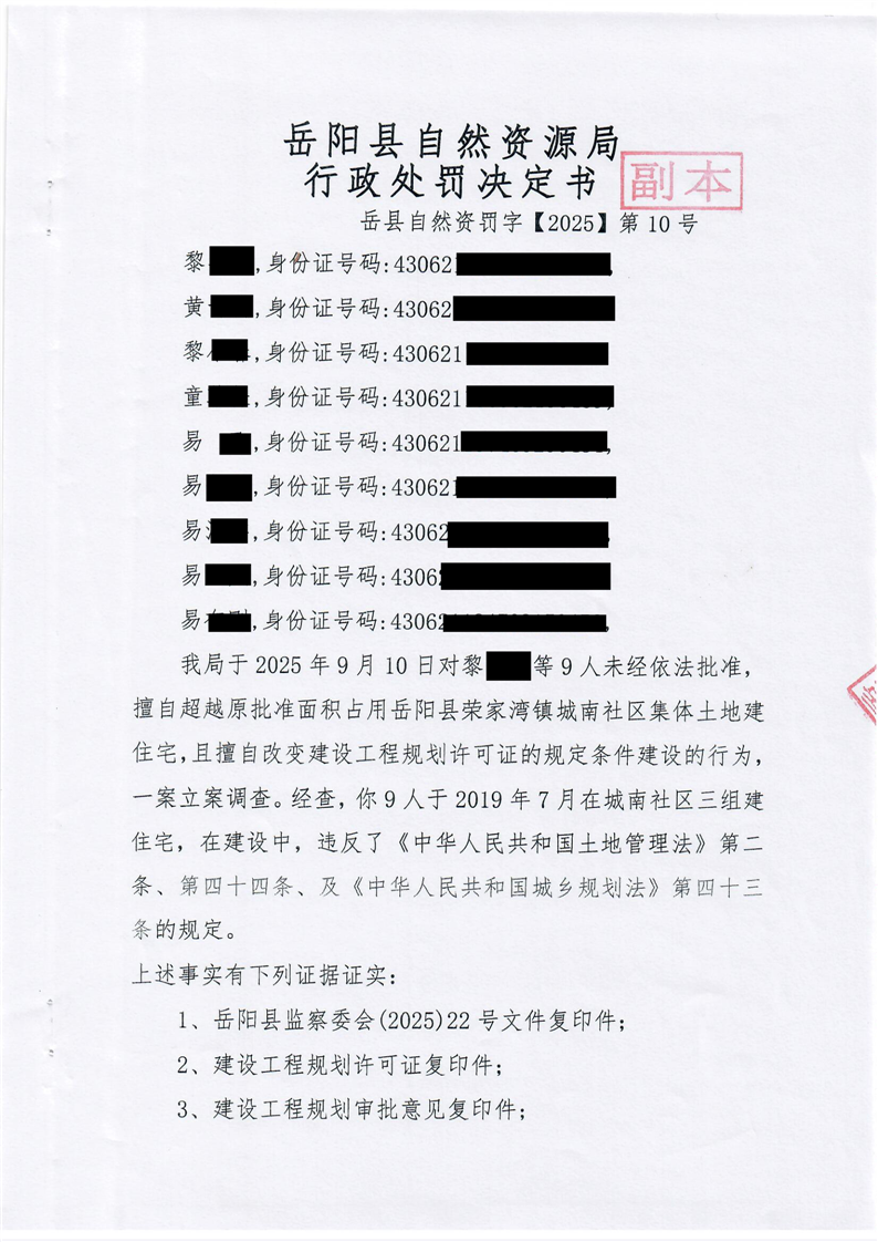 嶽陽縣自然資源局行政處罰決定書 嶽縣自然資罰字【2025】第10號