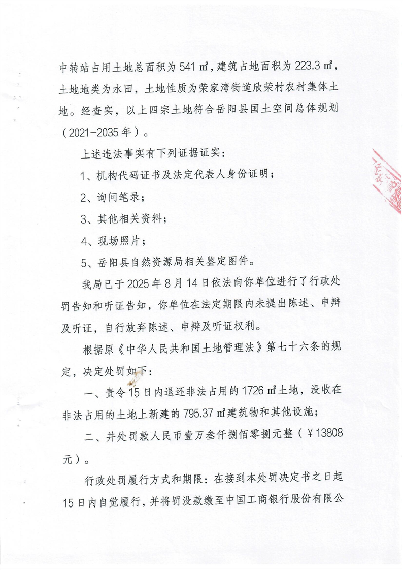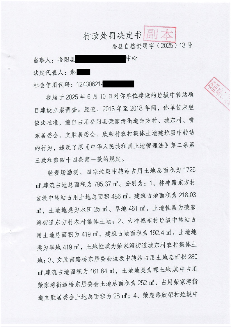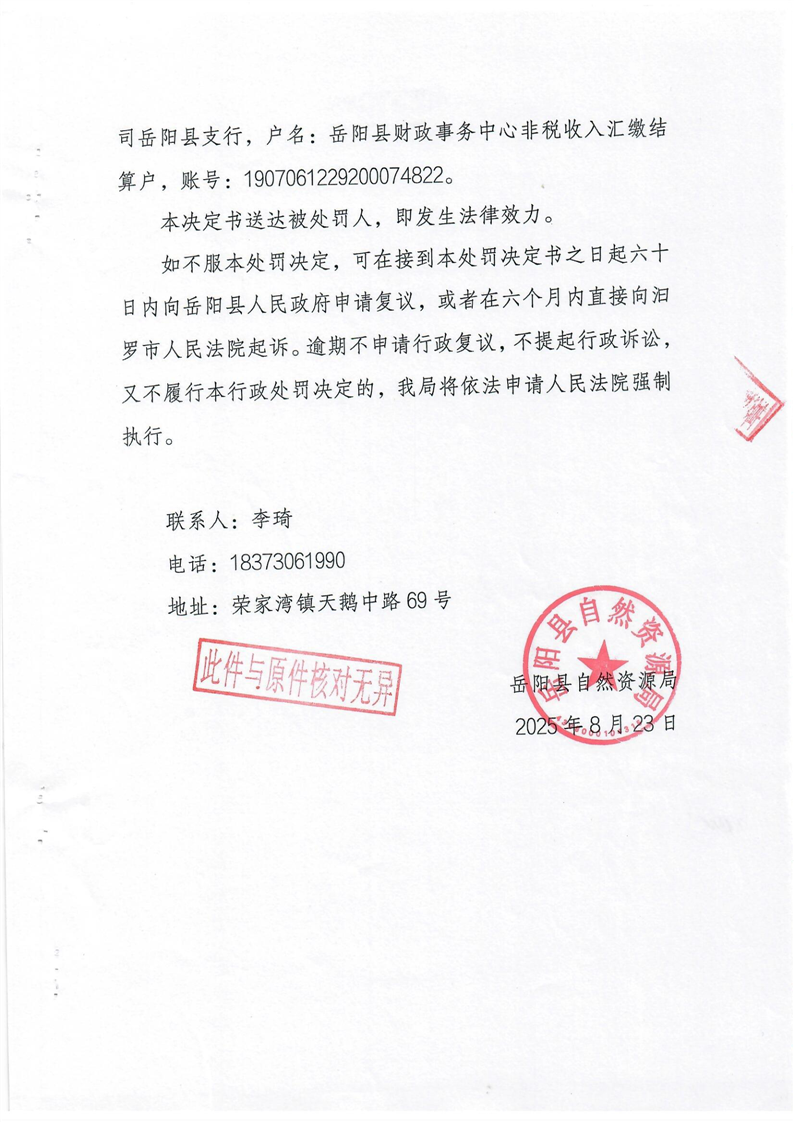 嶽陽縣自然資源局行政處罰決定書 嶽縣自然資罰字【2025】第13號