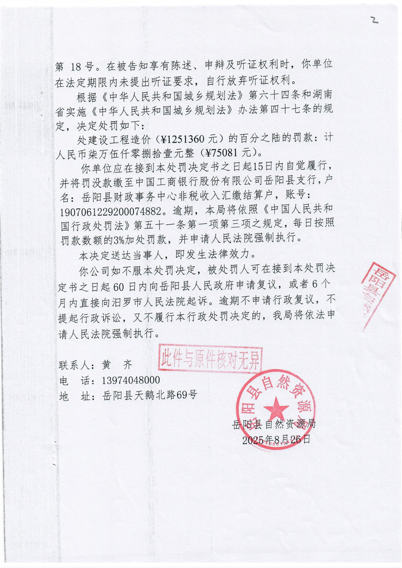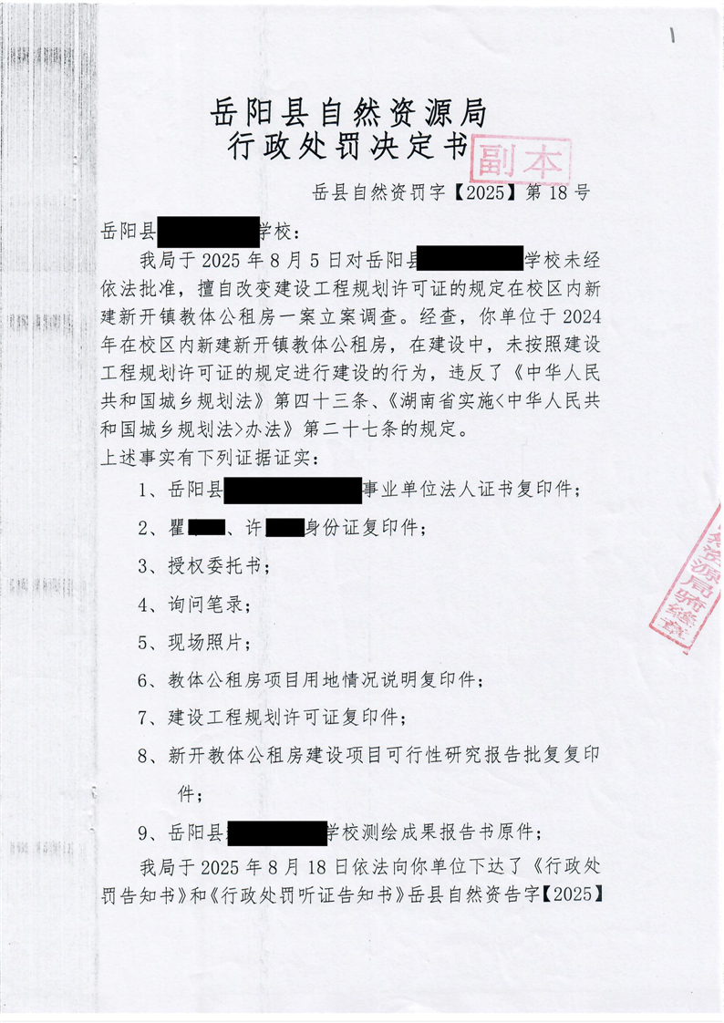 嶽陽縣自然資源局行政處罰決定書 嶽縣自然資罰字【2025】第18號