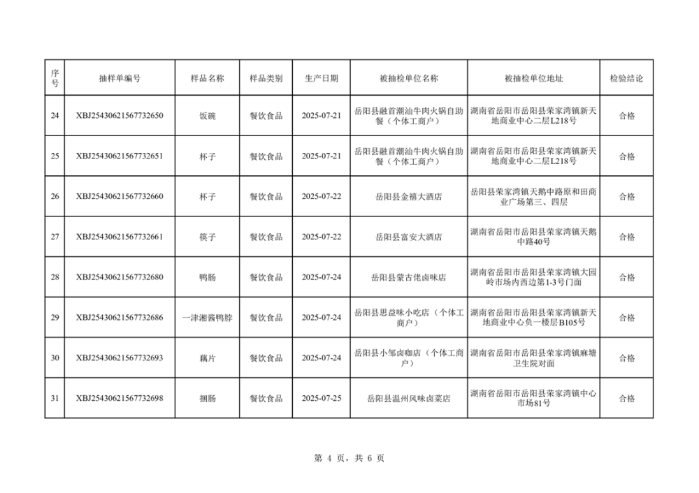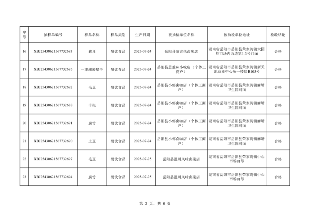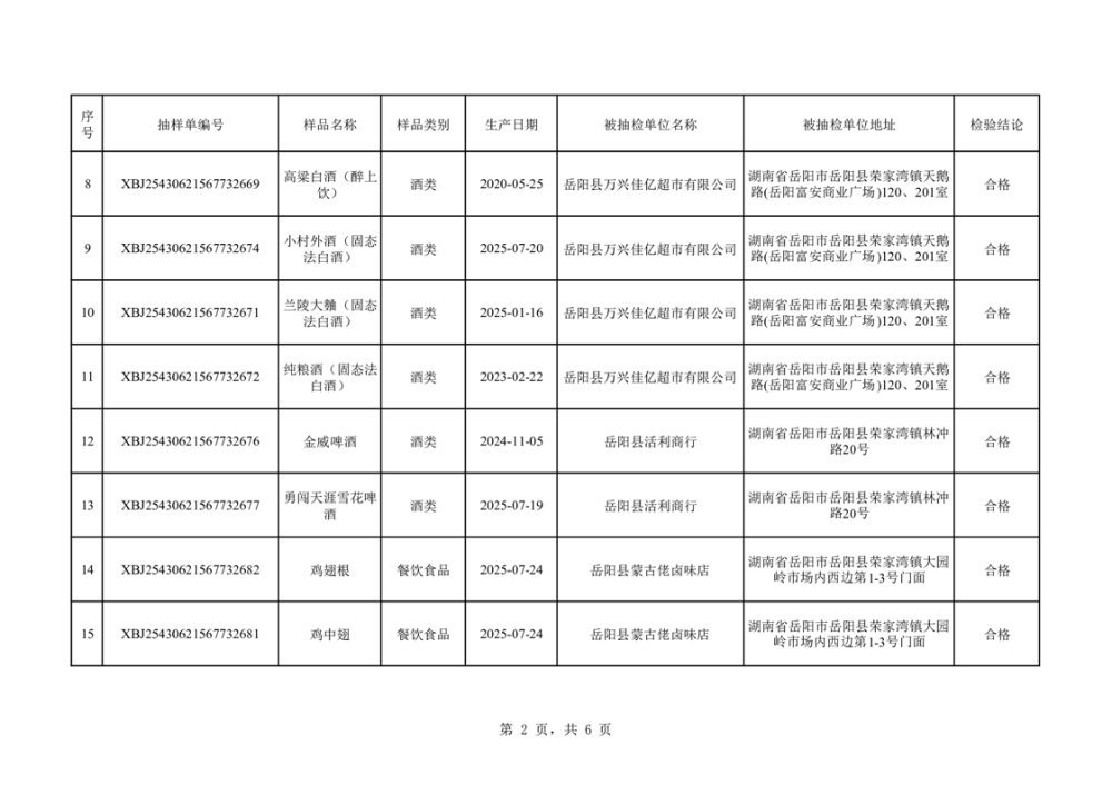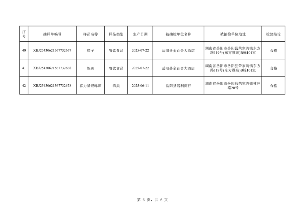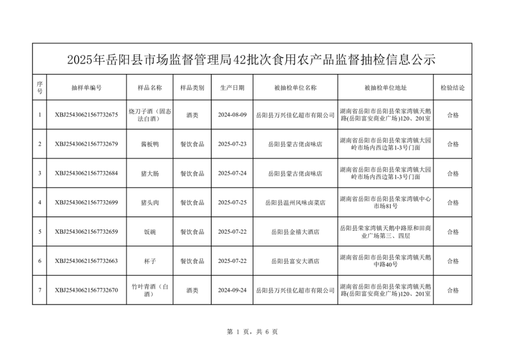 2025年10月14日抽檢數據公示(合格42批次)