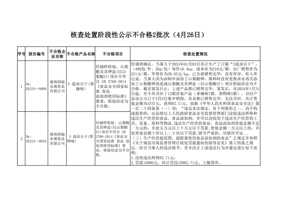 核查處置信息公示(2024年4月份)