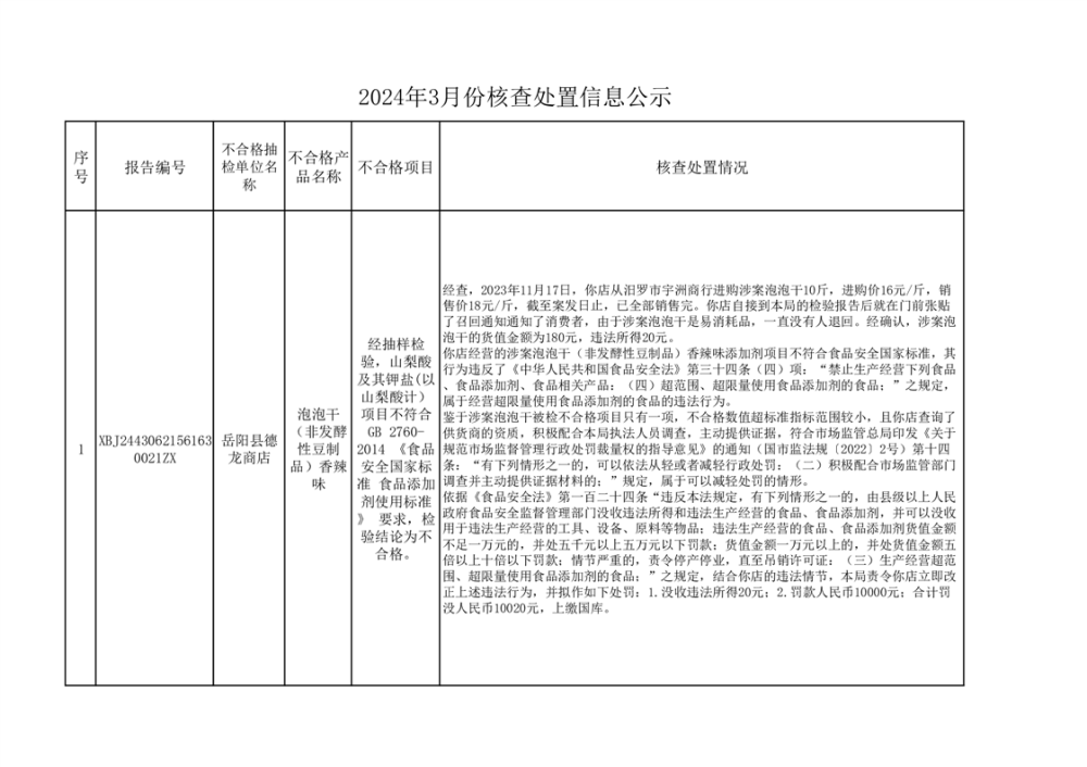 2024年3月份核查處置信息公示