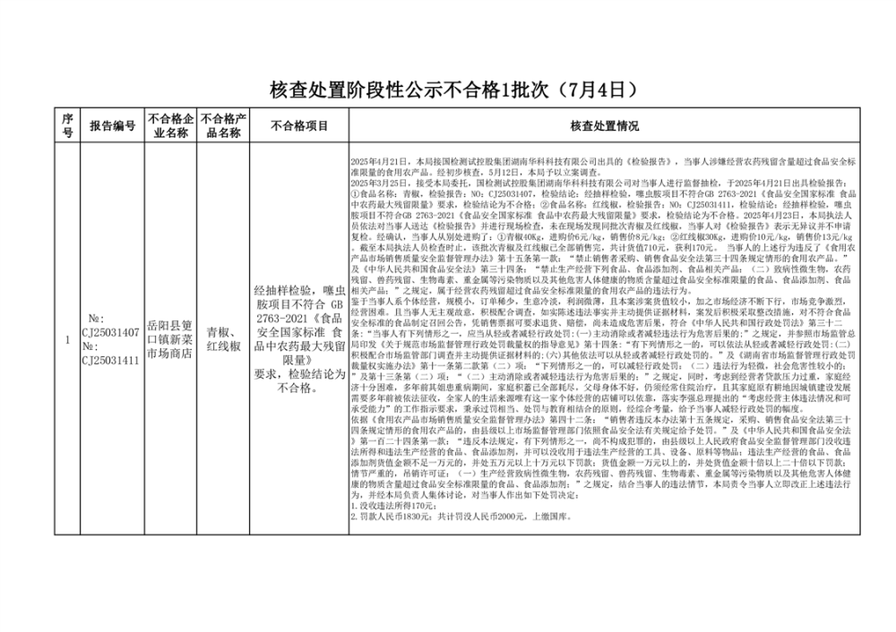 核查處置階段性信息公示(2025年7月4日)
