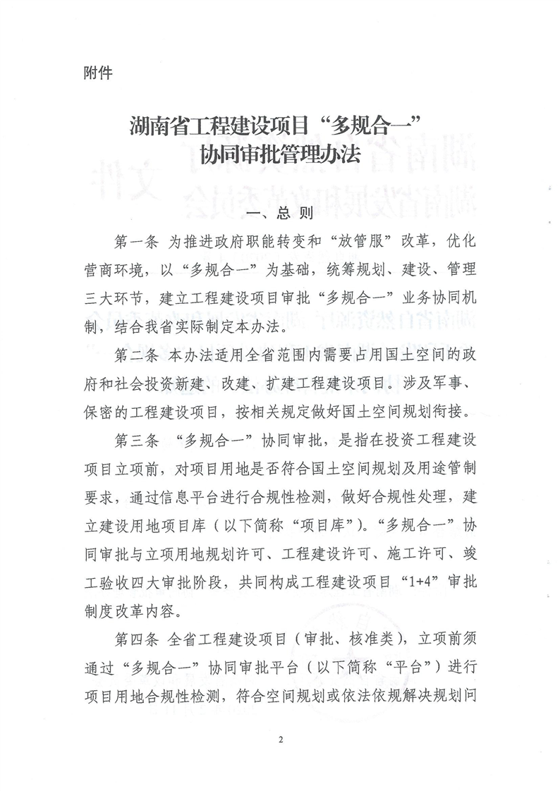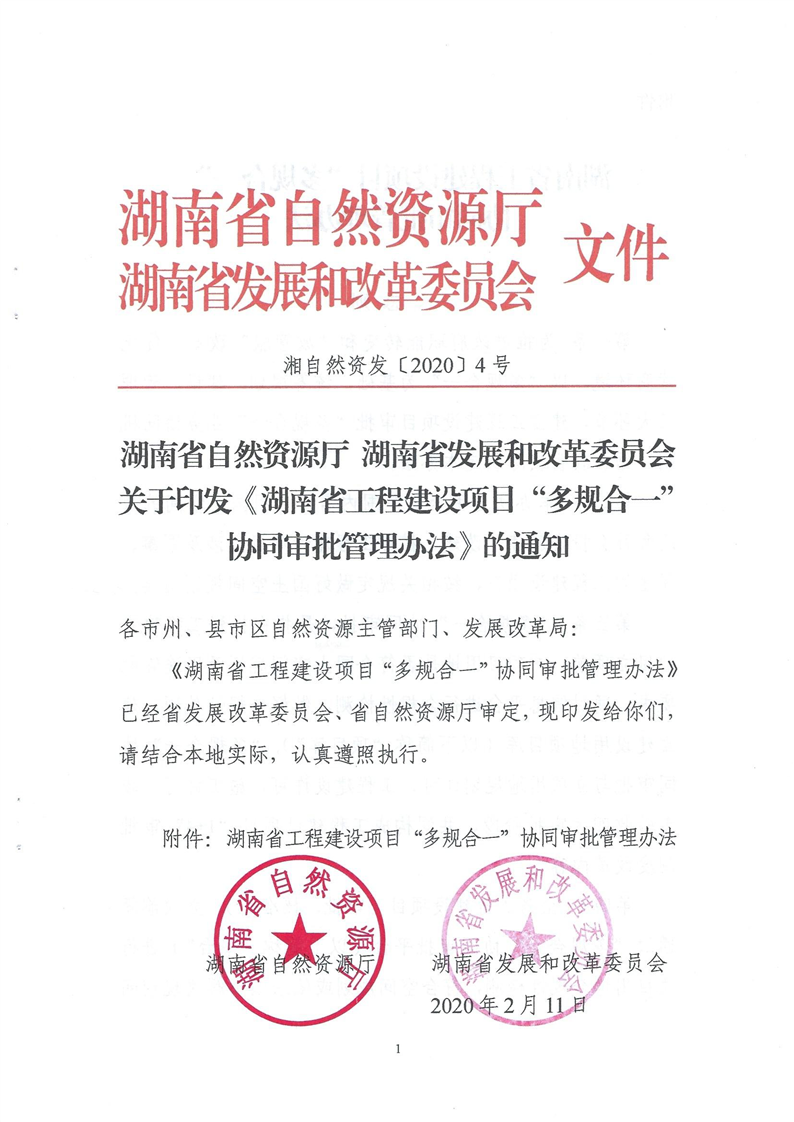 湖南省工程建設項目“多規合一”協同審批管理辦法
