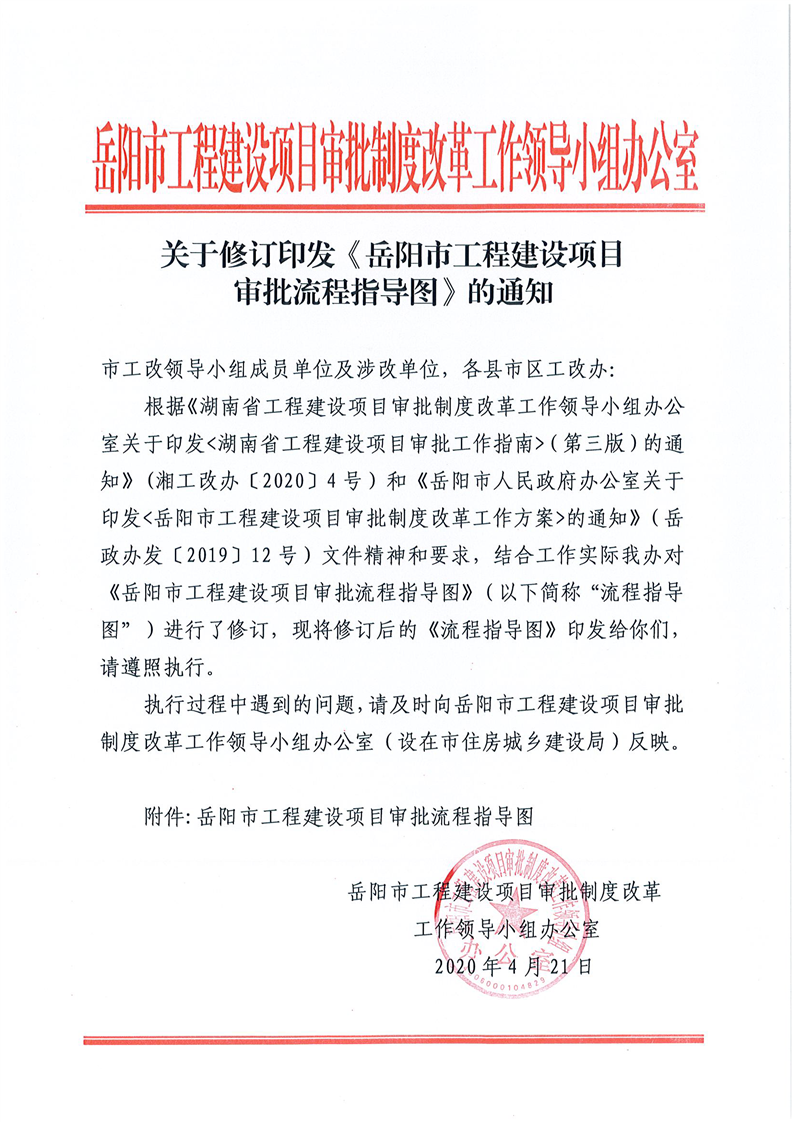 關於修訂印發《嶽陽市工程建設項目審批流程指導圖》的通知