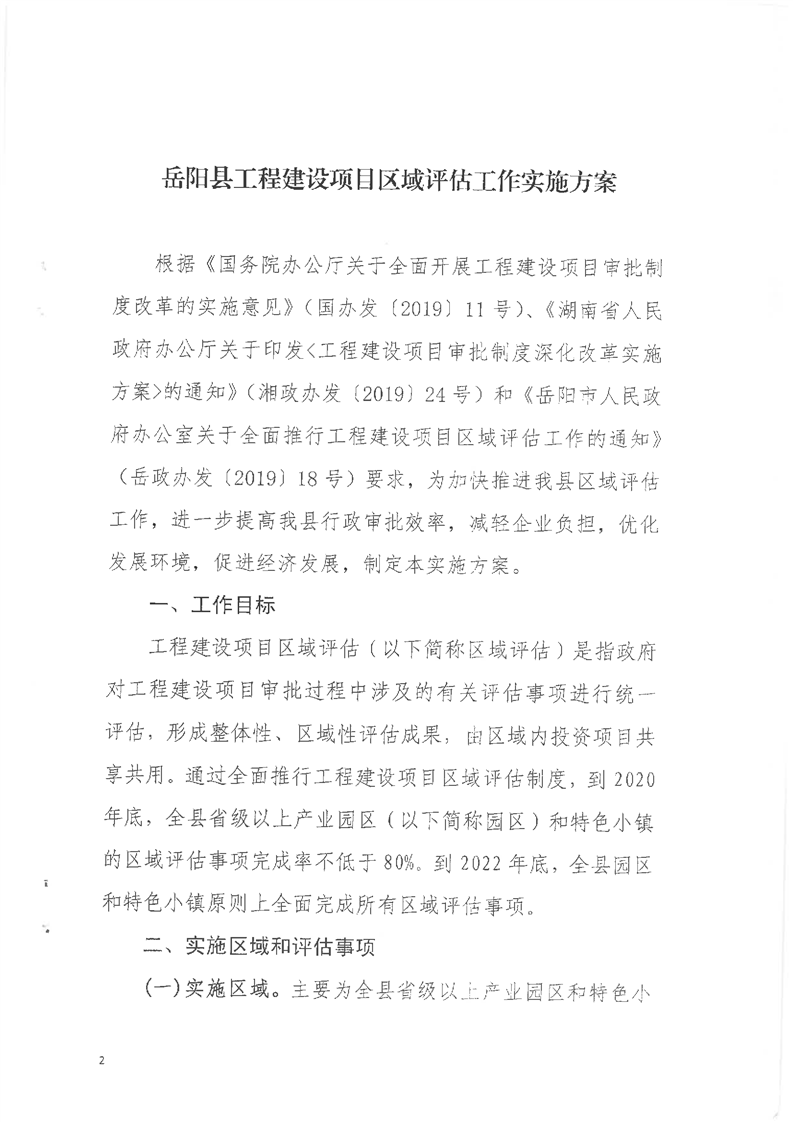 關於印發《嶽陽縣工程建設項目區域評估工作實施方案》的通知