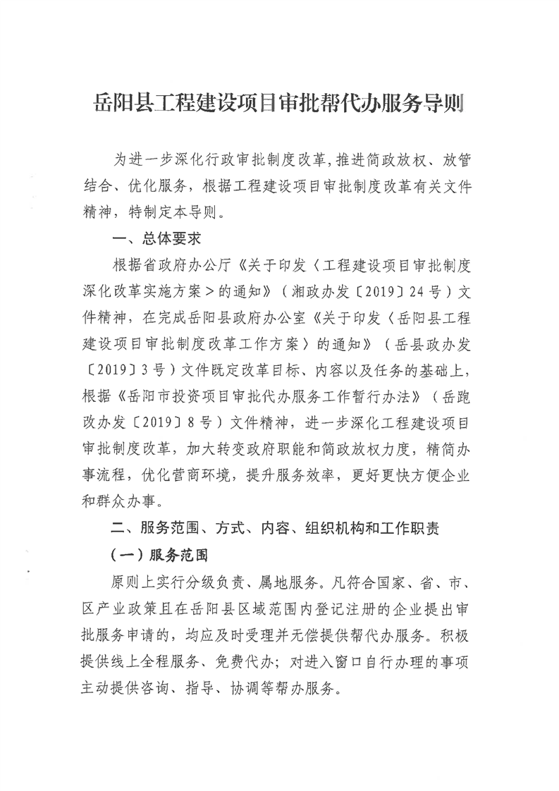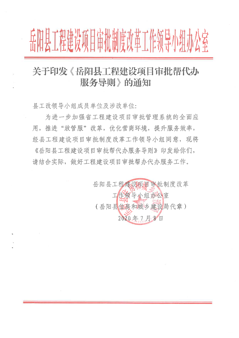 關於印發《嶽陽縣工程建設項目審批幫代辦服務導則》的通知