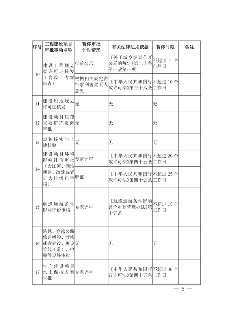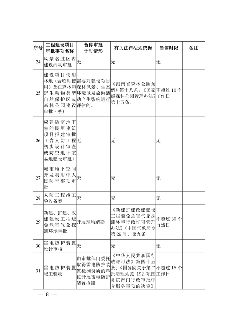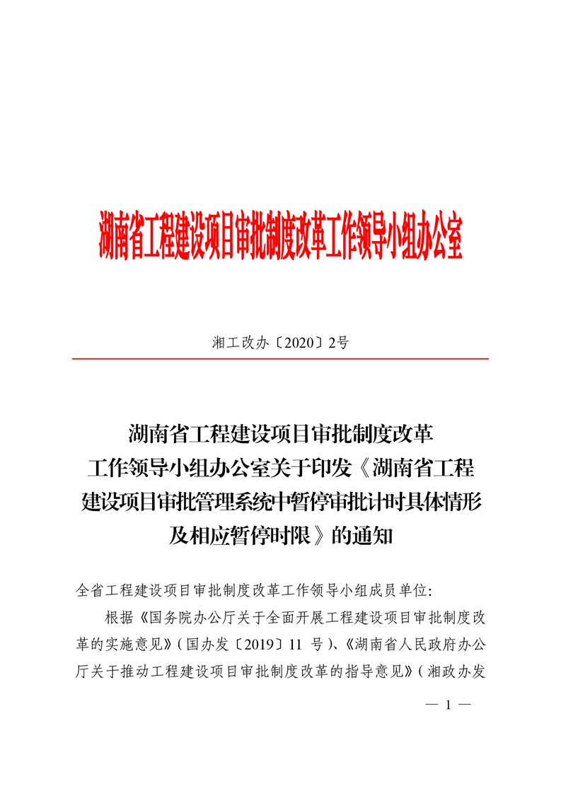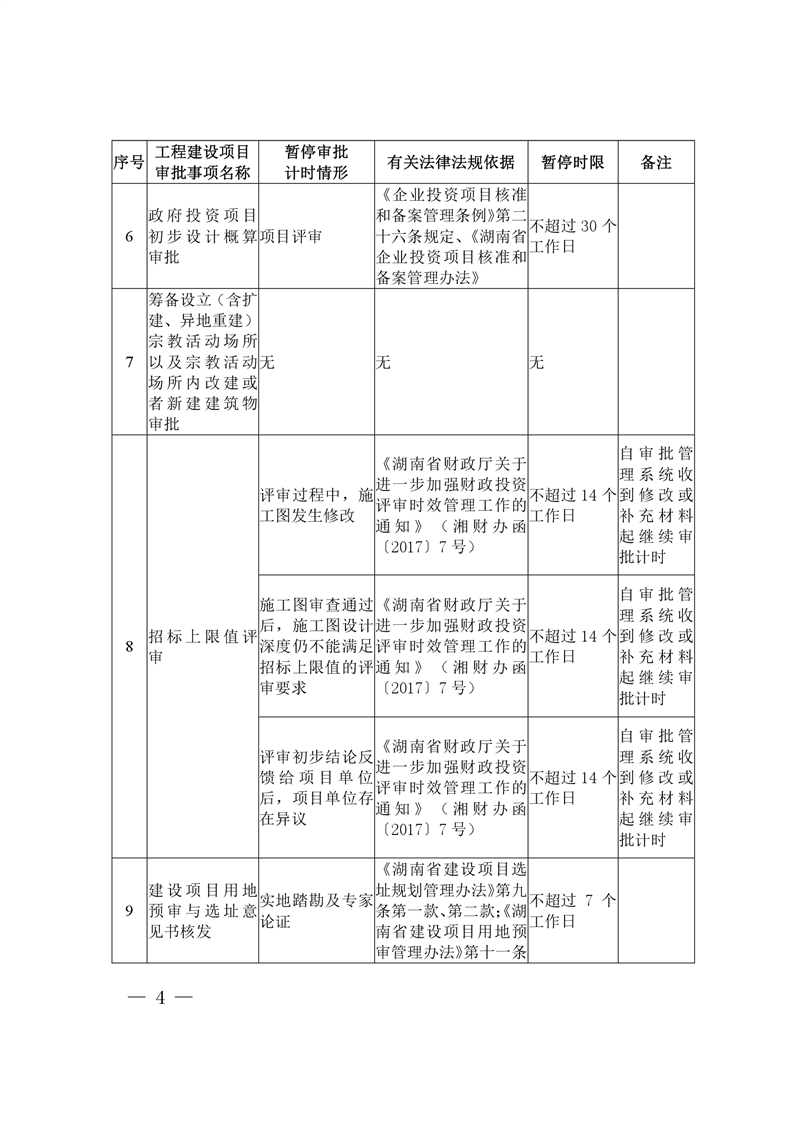 關於轉發《湖南省工程建設項目審批管理係統中暫停審批計時具體情形及相應暫停時限》的通知