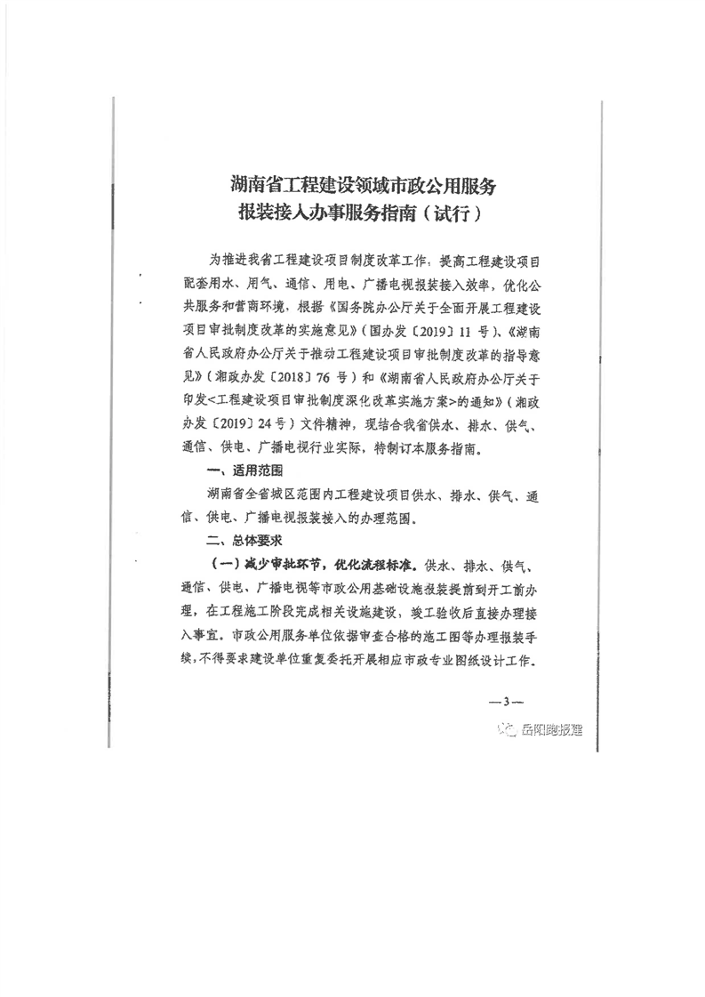 關於轉發《湖南省工程領域市政公用服務報裝接入辦事指南(實行)》的通知