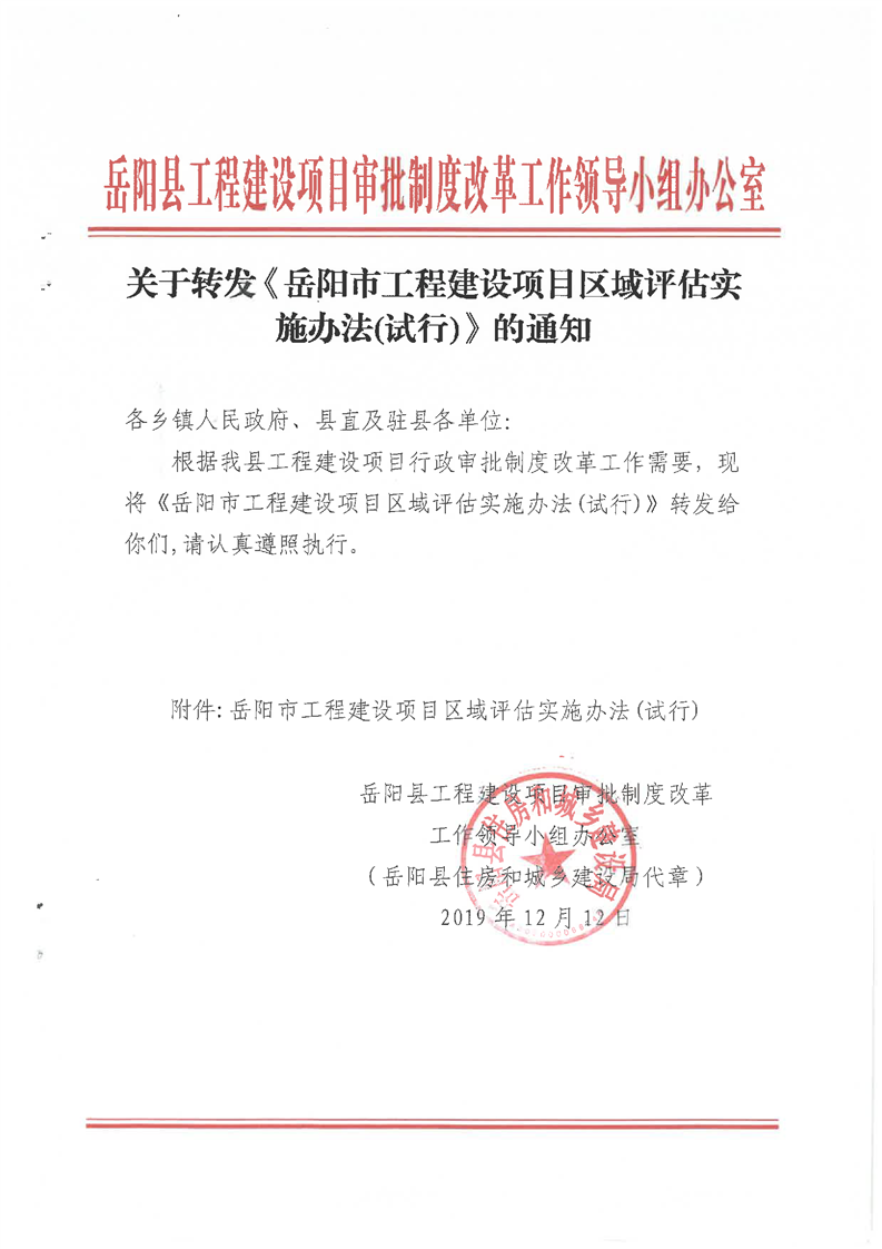 關於轉發《嶽陽市工程建設項目區域評估實施辦法(試行)》的通知