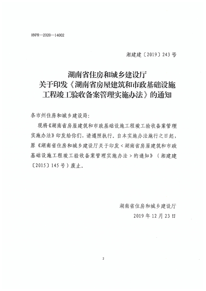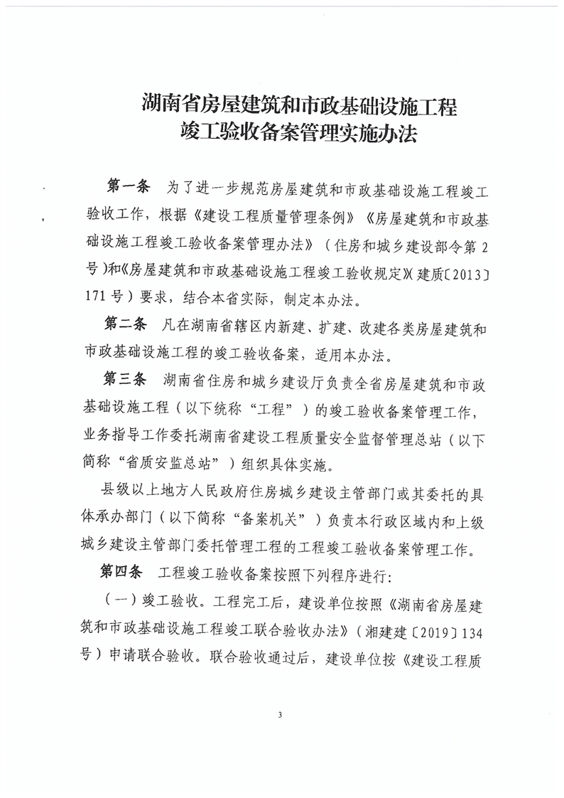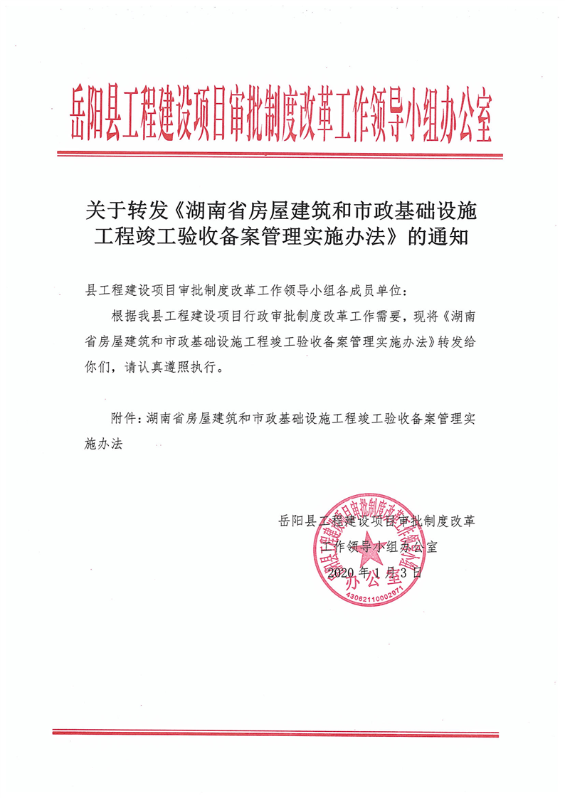 關於轉發《湖南省房屋建築和市政基礎設施工程竣工驗收備案管理實施辦法》的通知
