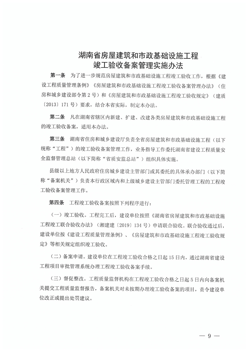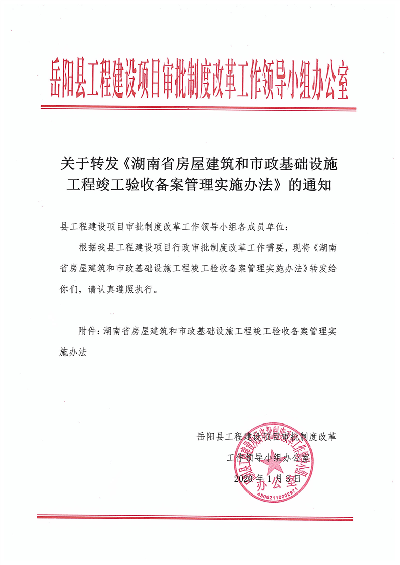關於轉發《湖南省房屋建築和市政基礎設施工程 竣工驗收備案管理實施辦法》的通知