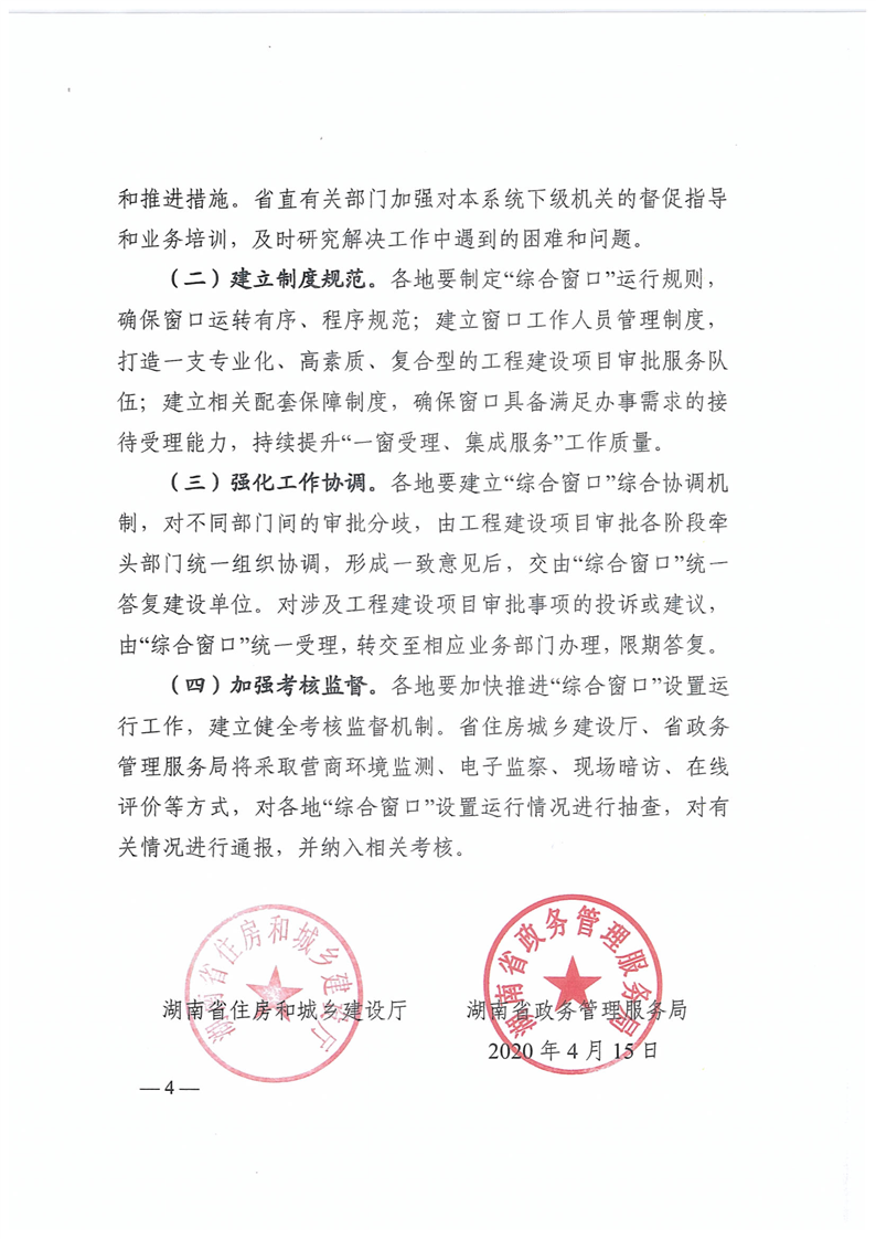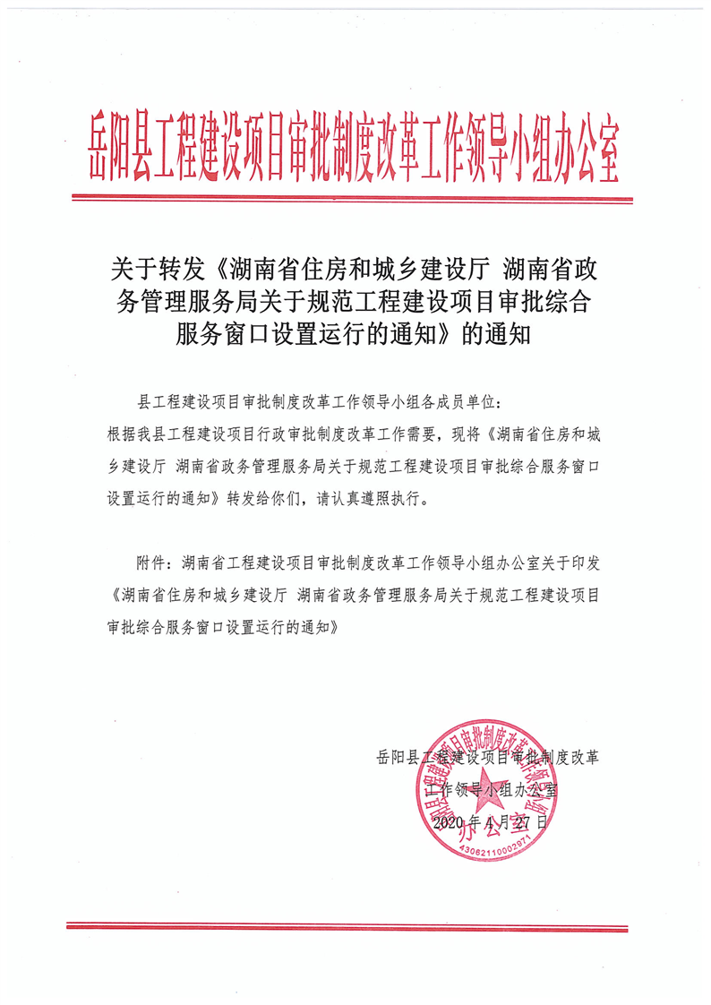 關於轉發《湖南省住房和城鄉建設廳 湖南省政務管理服務局關於規範工程建設項目審批綜合服務窗口設置運行的通知》的通知