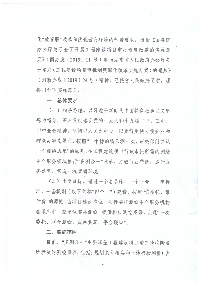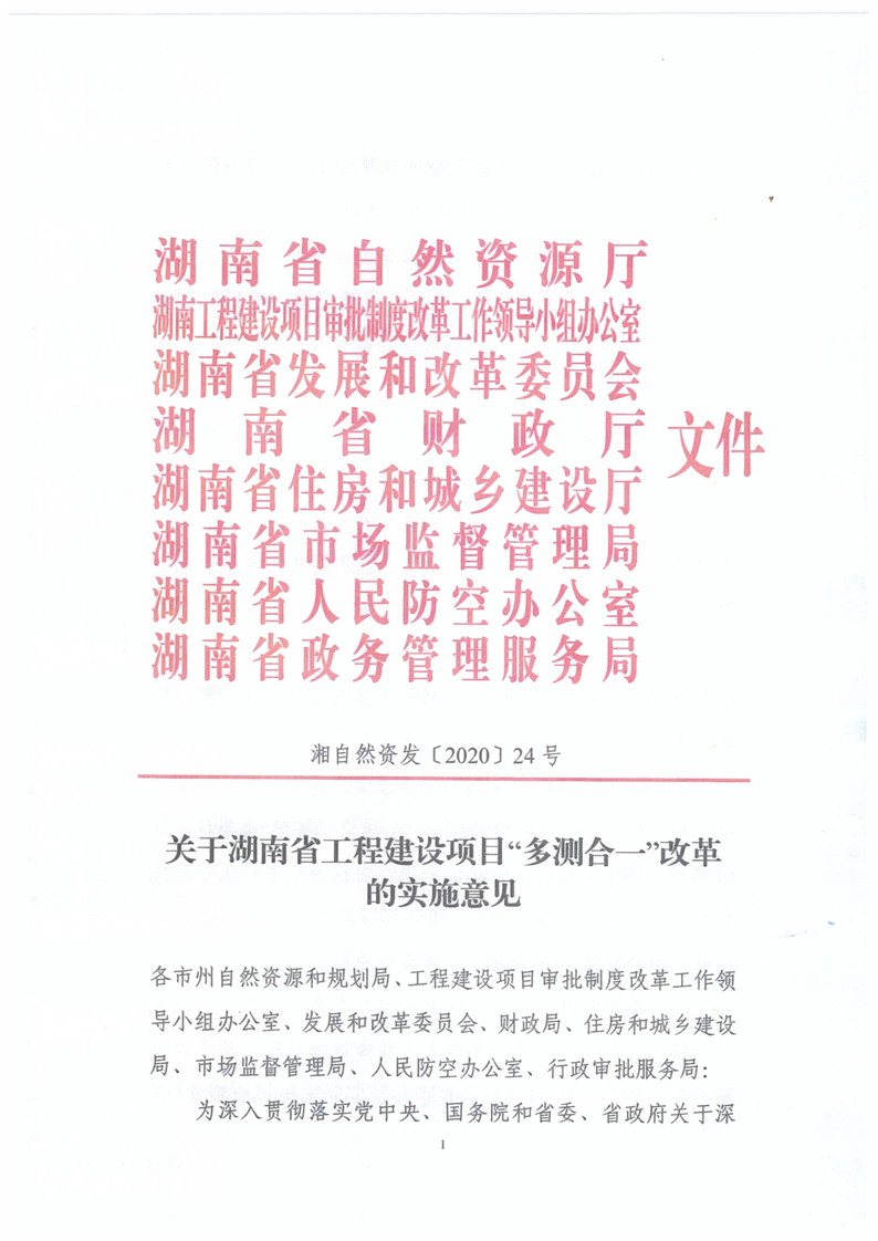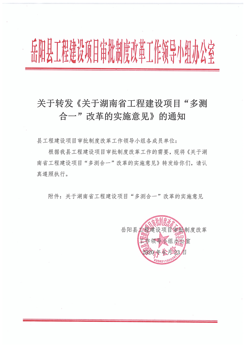 關於轉發《關於湖南省工程建設項目”多測合一“改革的實施意見》的通知