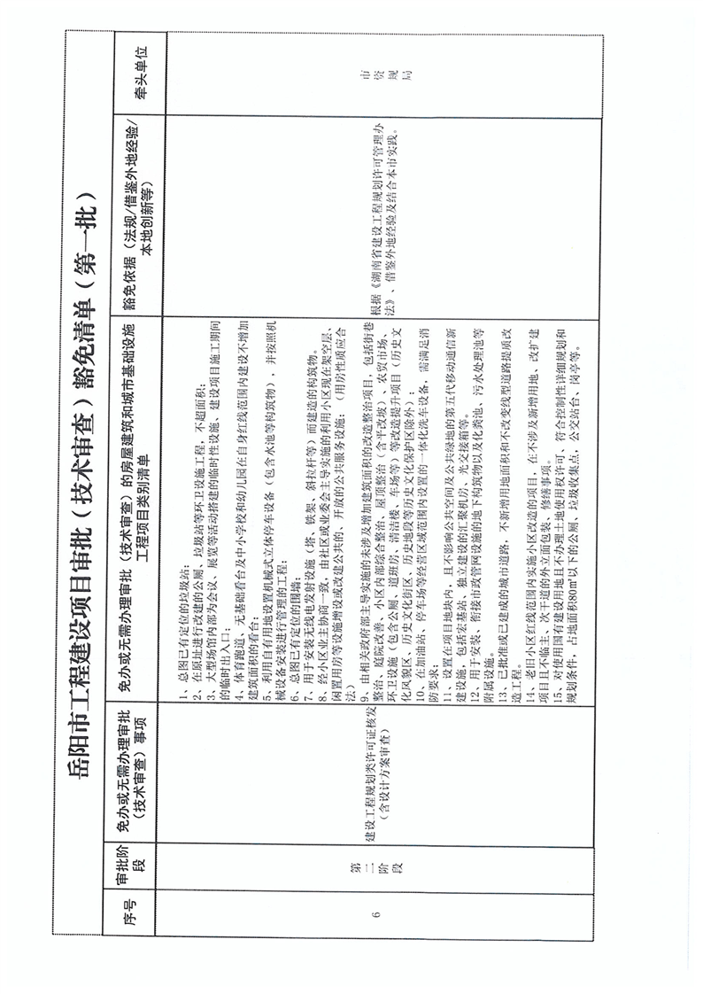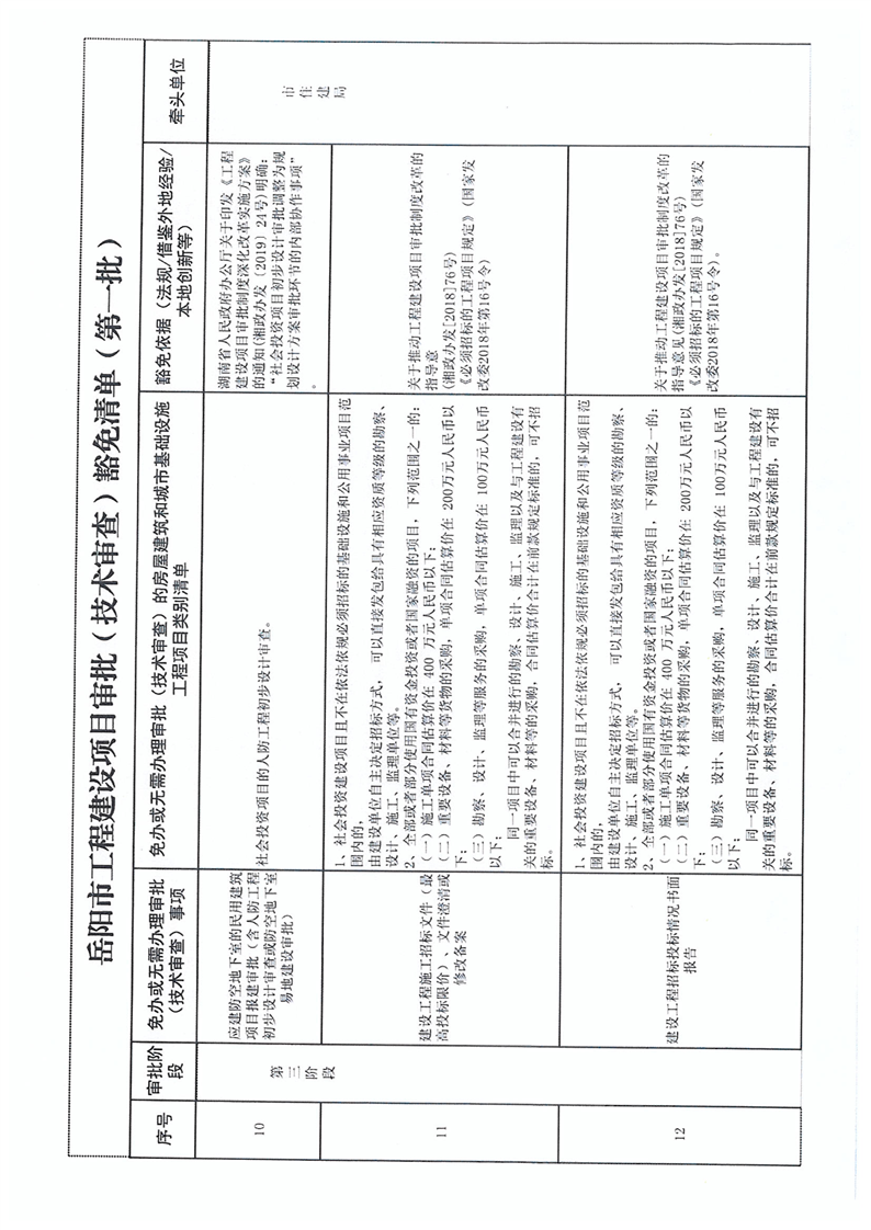 關於轉發《關於印發 嶽陽市工程建設項目審批(技術審查)豁免清單(第一批)的通知》