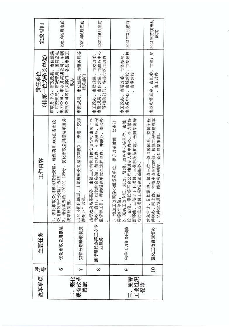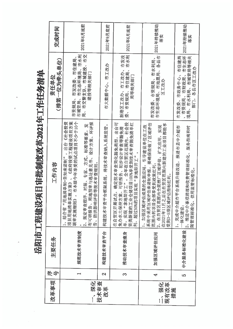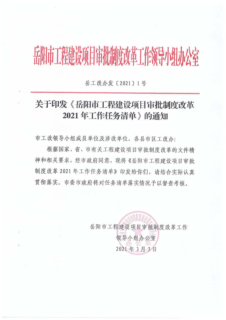 關於印發《嶽陽市工程建設項目審批製度改革2021年工作任務清單》的通知