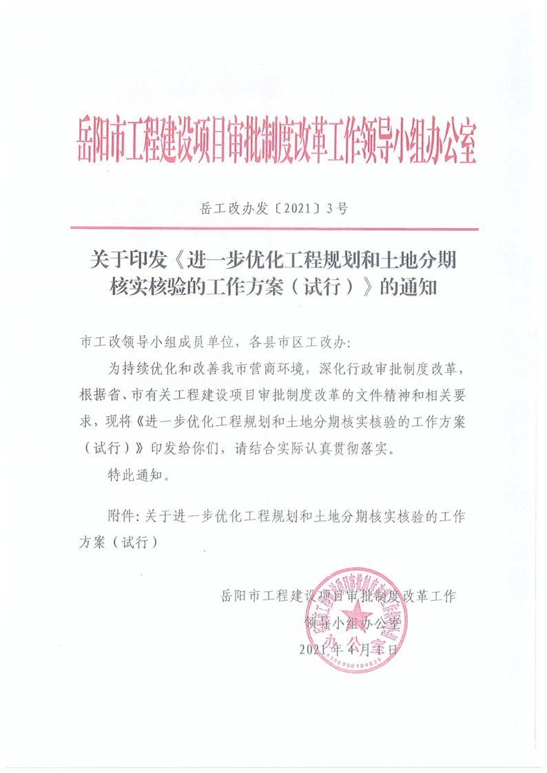 關於轉發《進一步優化工程規劃和土地分期核實校驗的工作方案(試行)》的通知