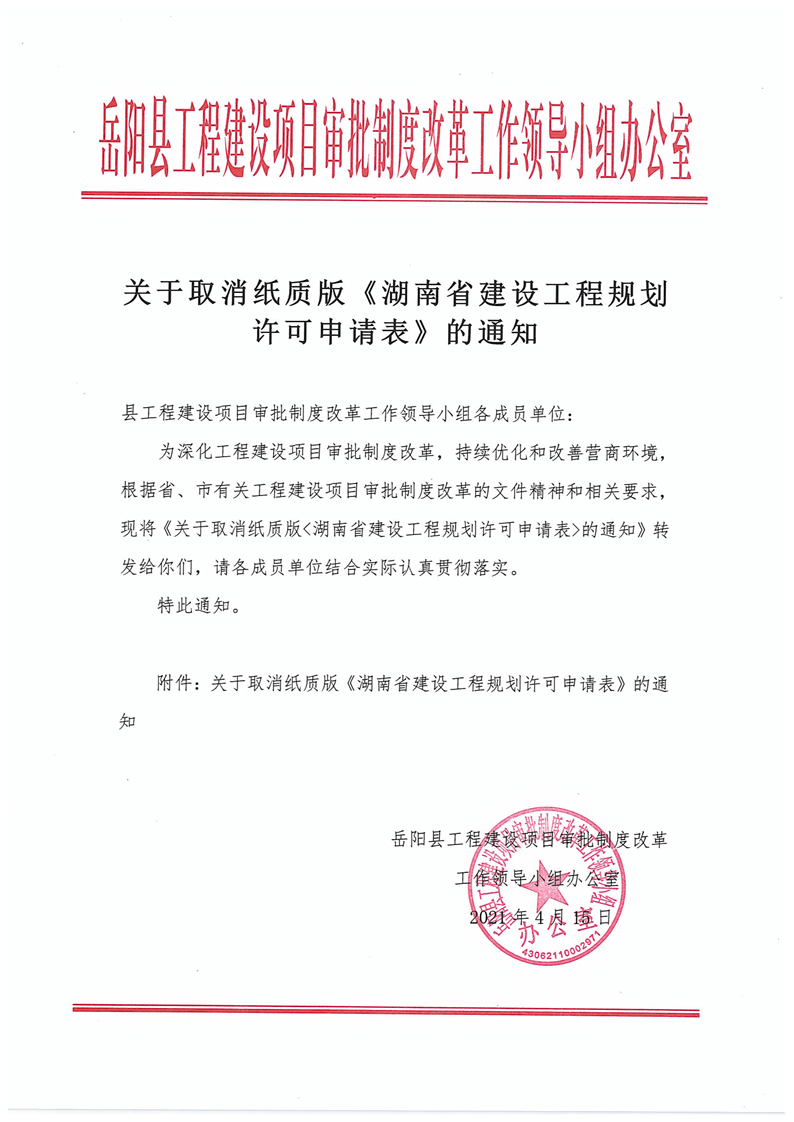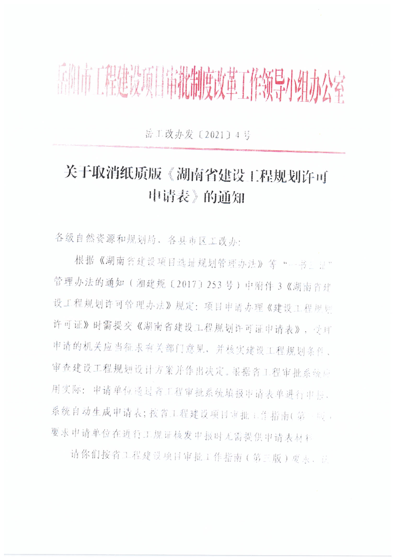 關於取消紙質版《湖南省建設工程規劃許可申請表》的通知