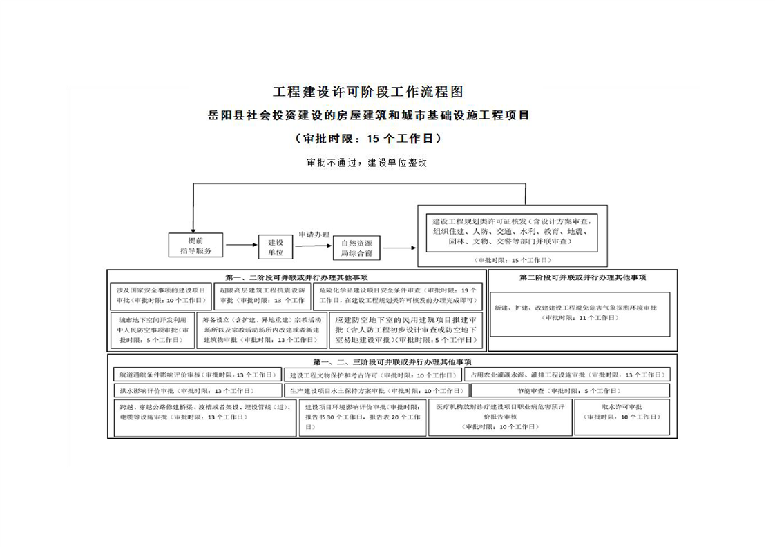 工程建設許可階段工作流程圖(嶽陽縣社會投資建設的房屋建築和城市基礎設施工程)