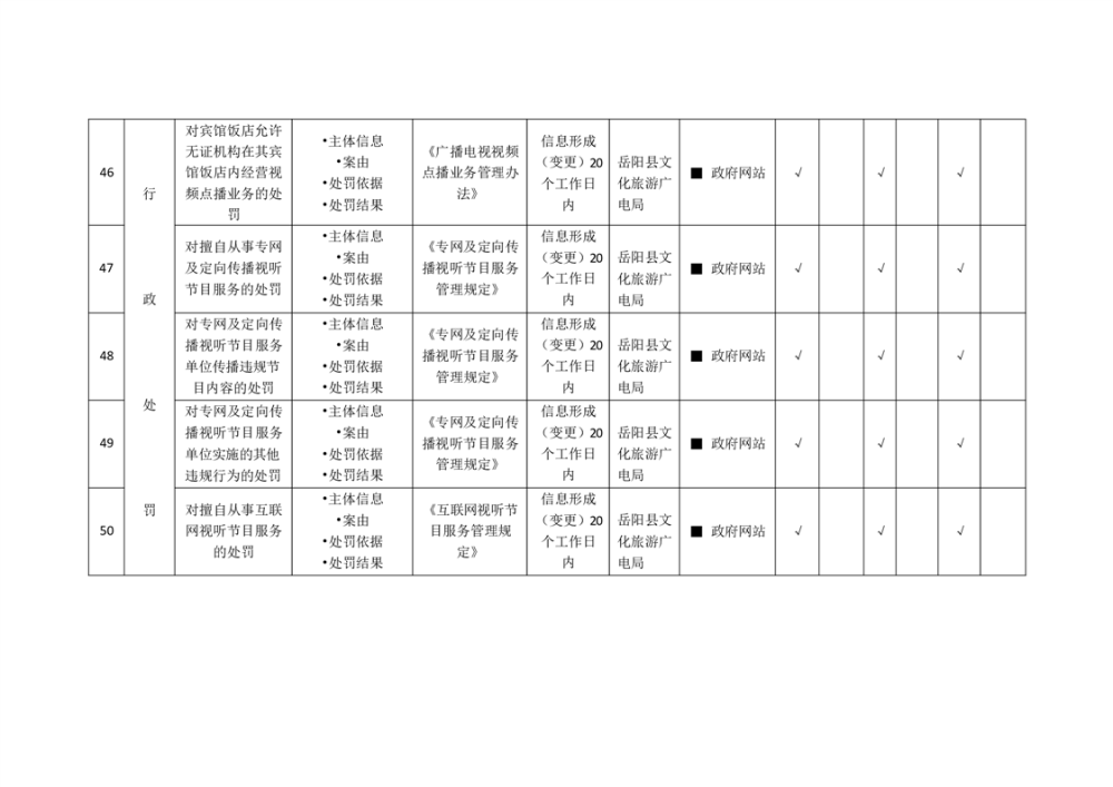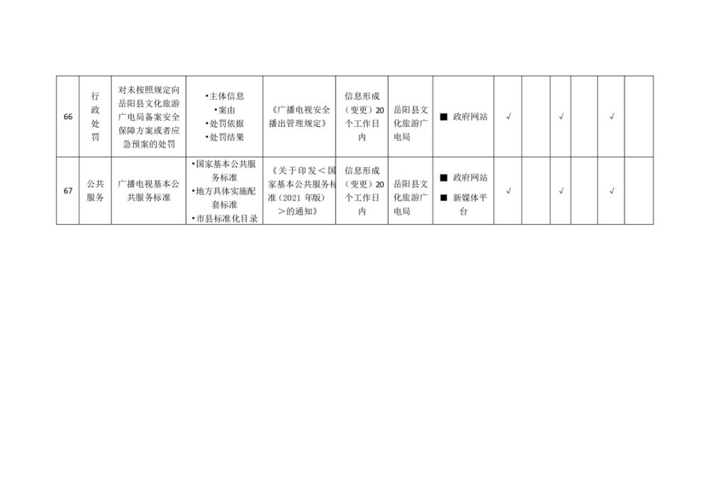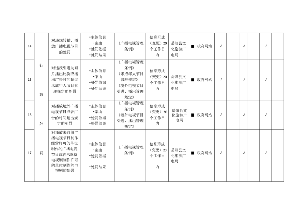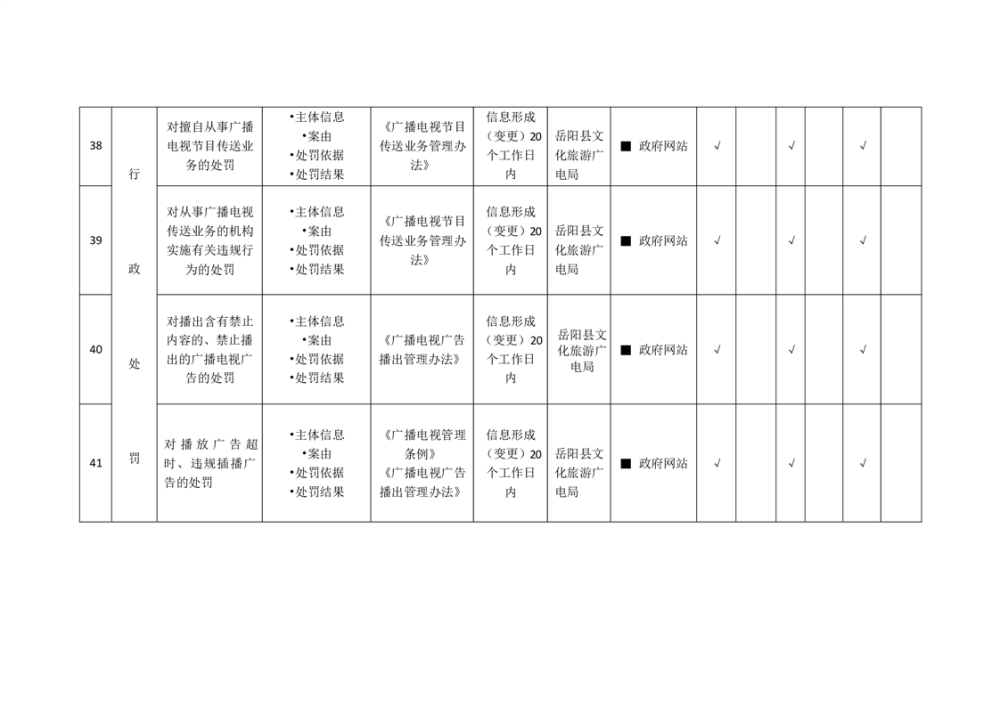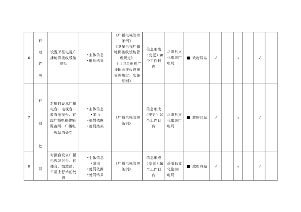嶽陽縣廣播電視領域基層政務公開標準目錄