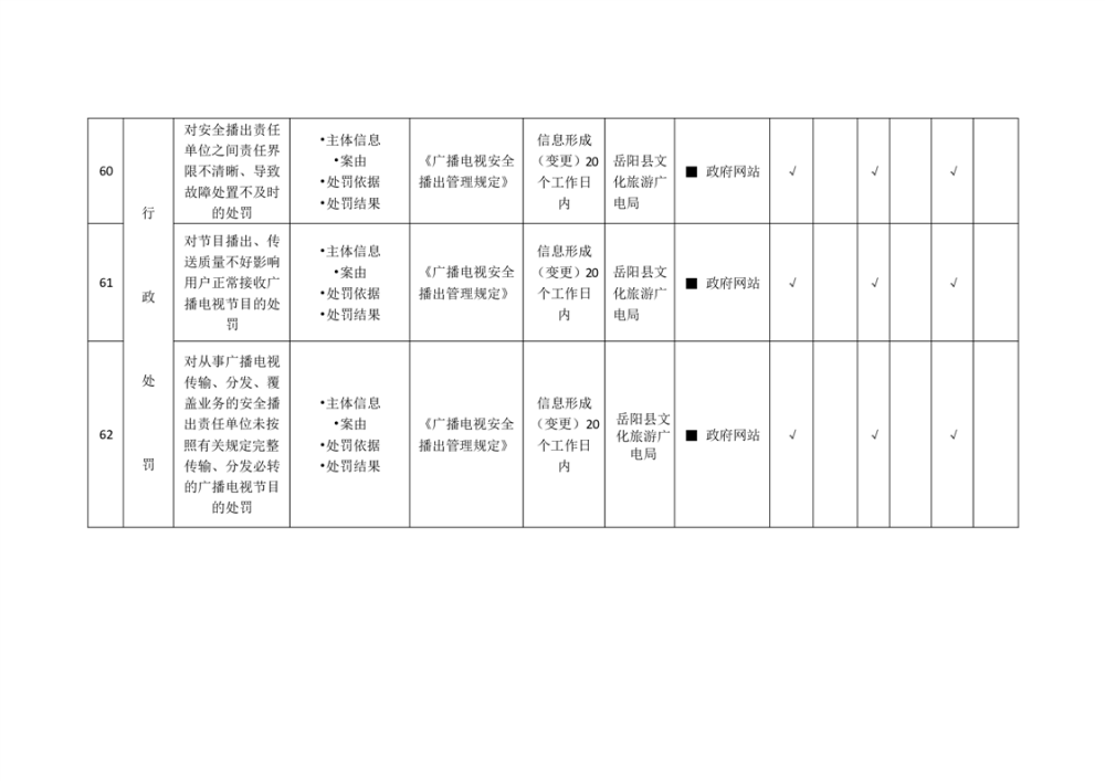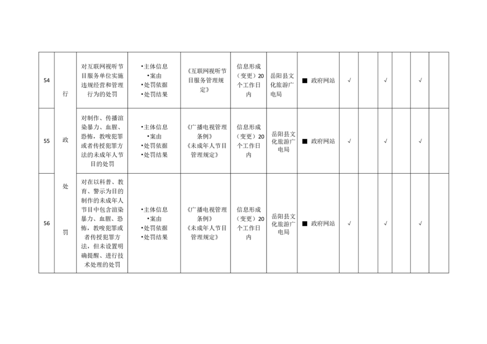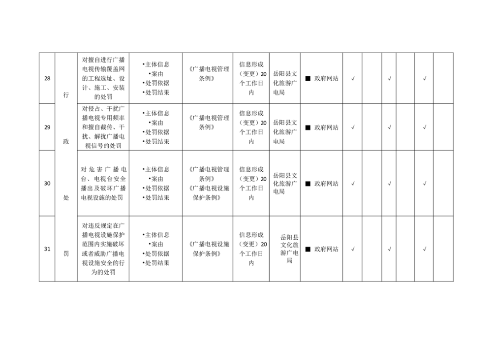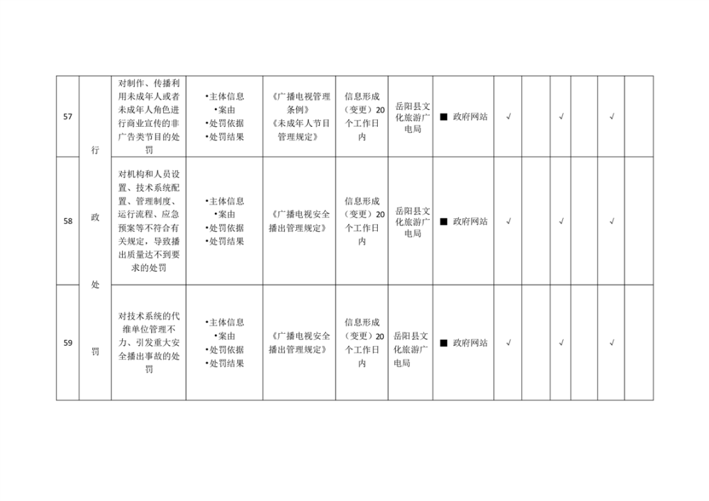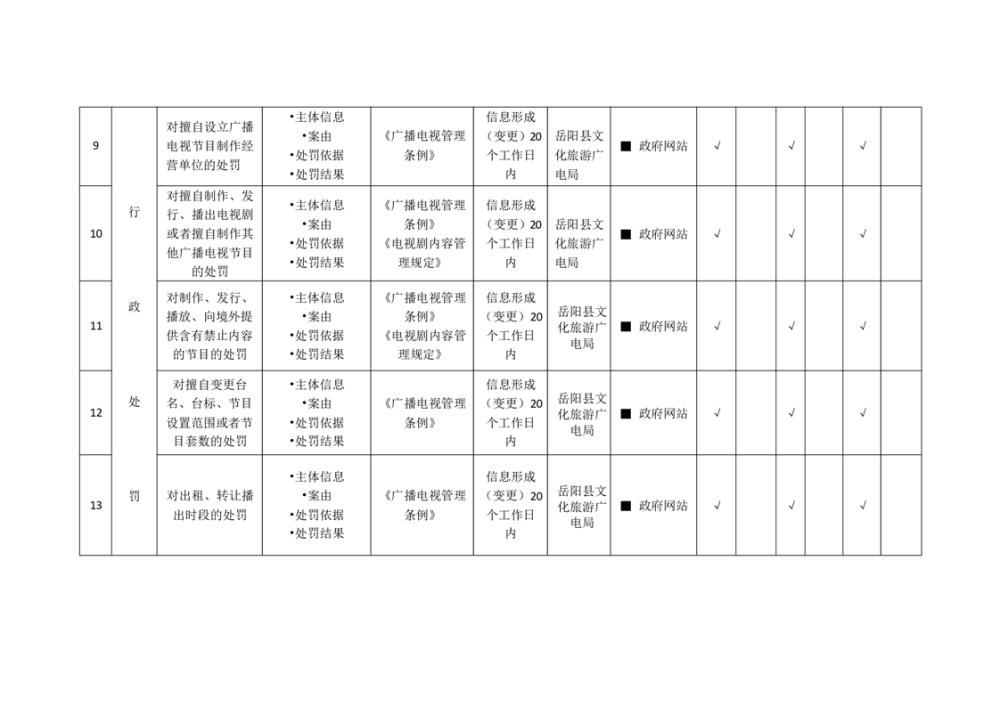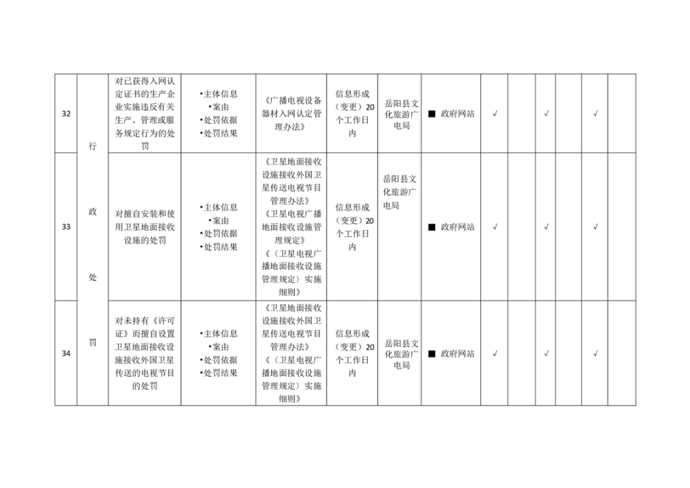 嶽陽縣廣播電視領域基層政務公開標準目錄