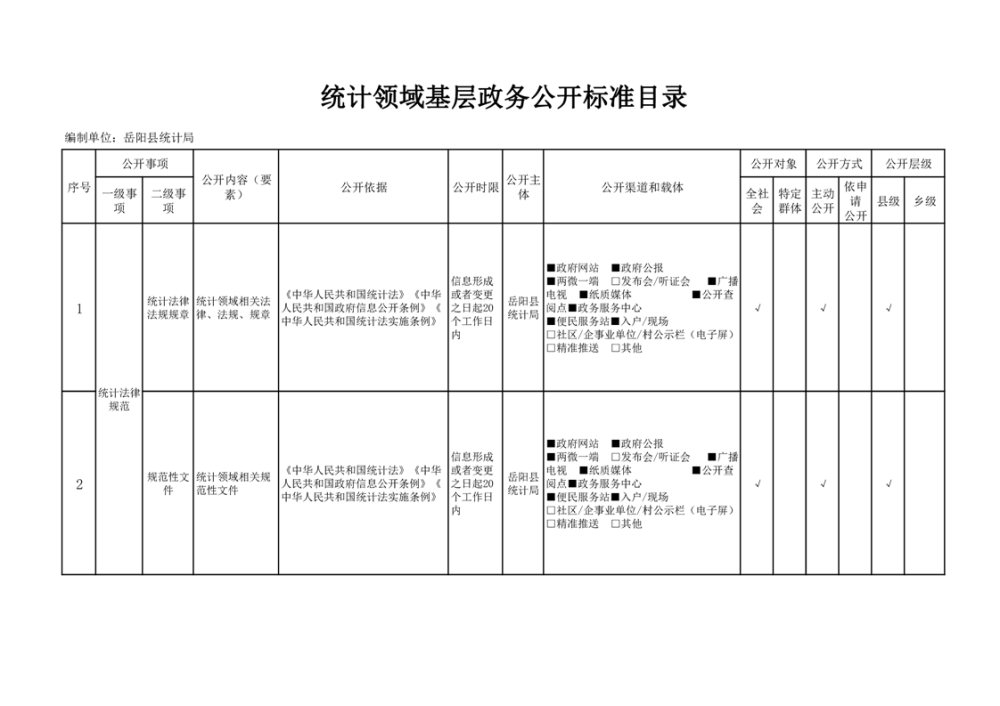 2024年嶽陽縣統計領域基層政務公開標準目錄