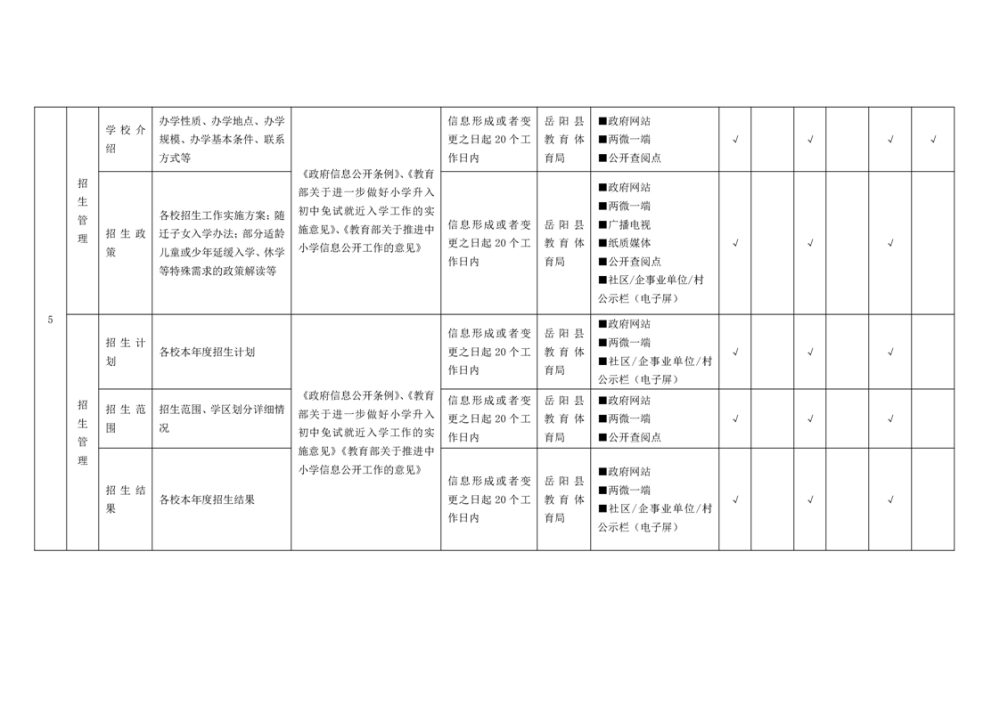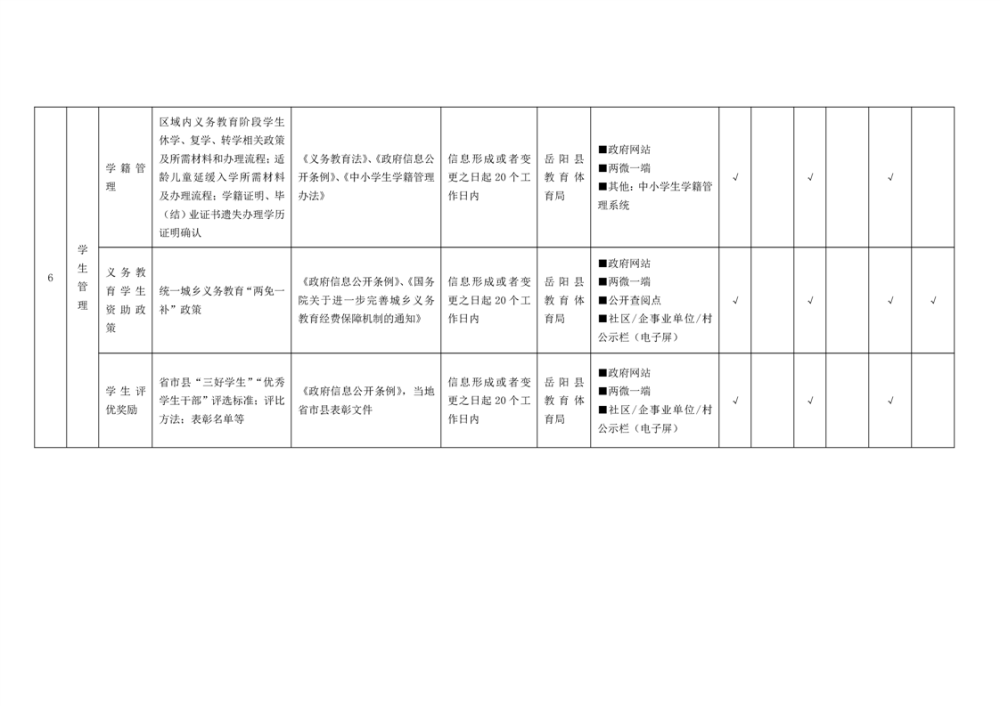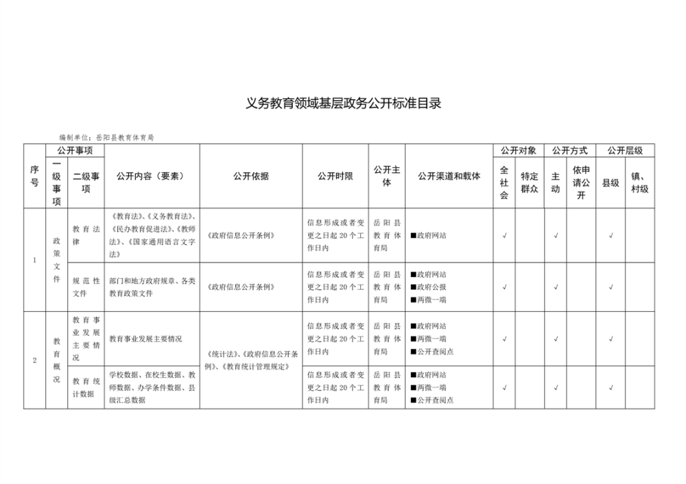 2024年嶽陽縣義務教育領域基層政務公開標準目錄