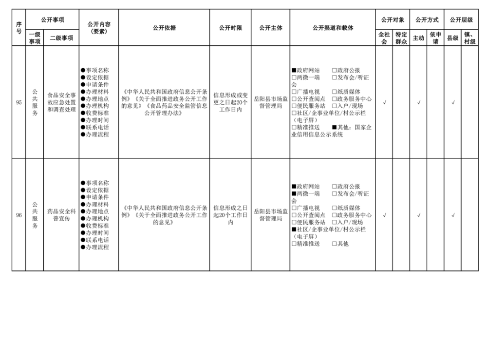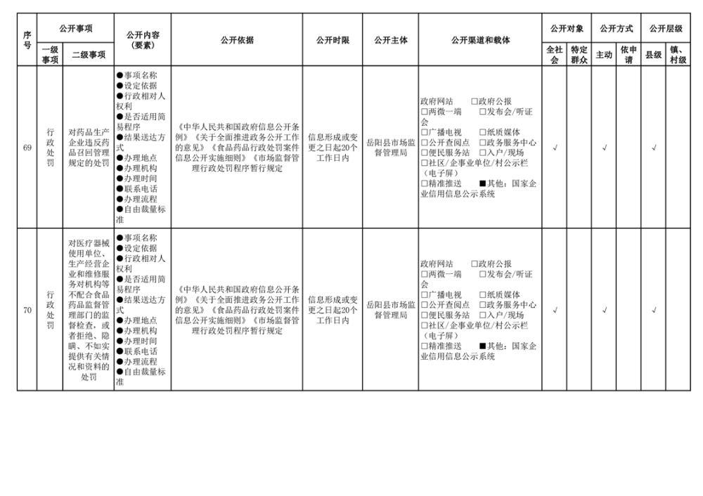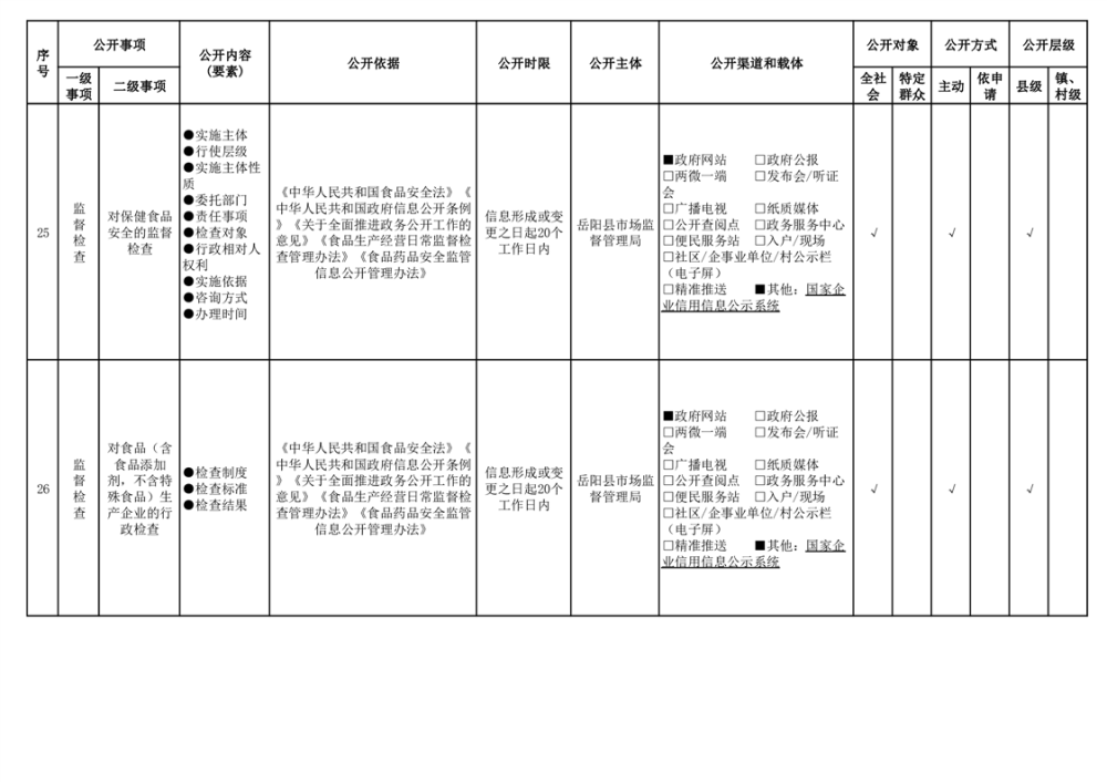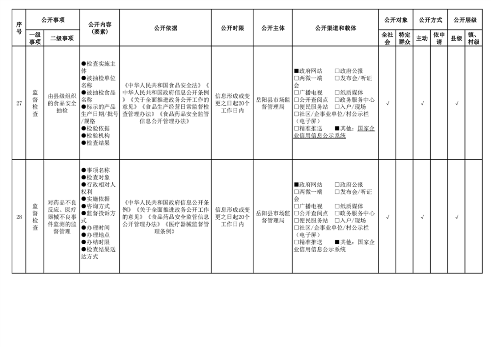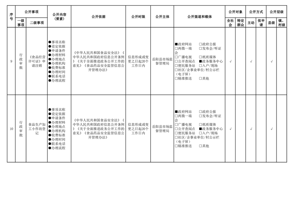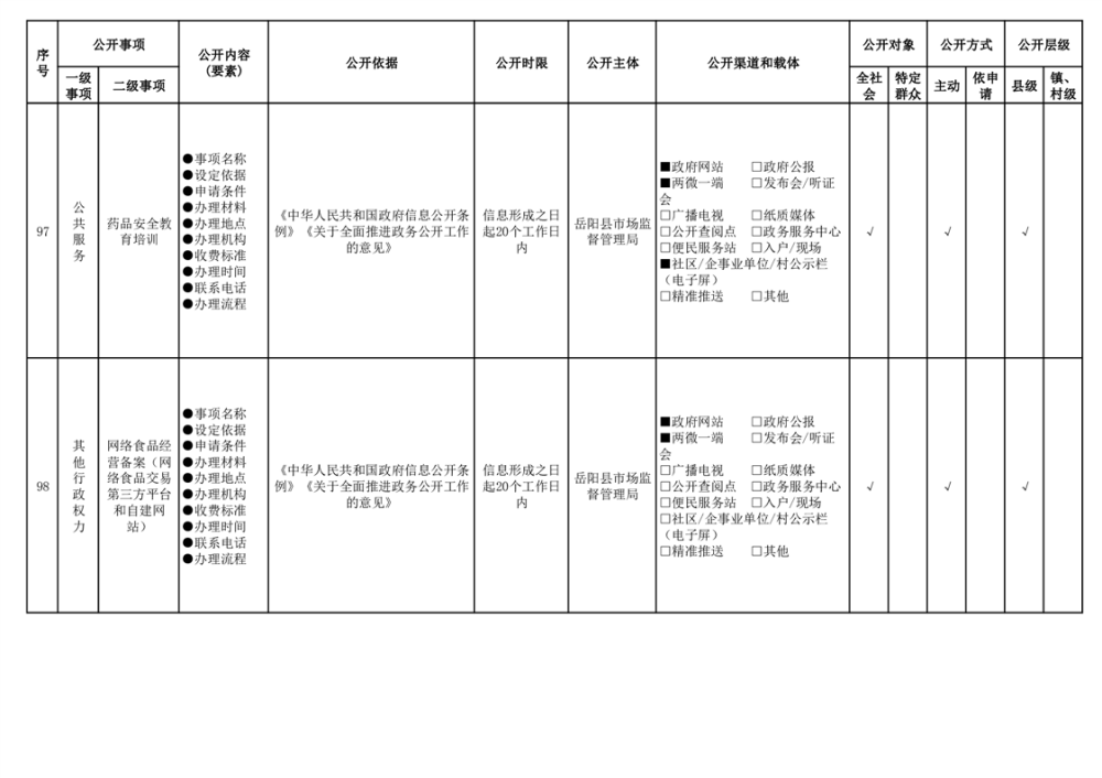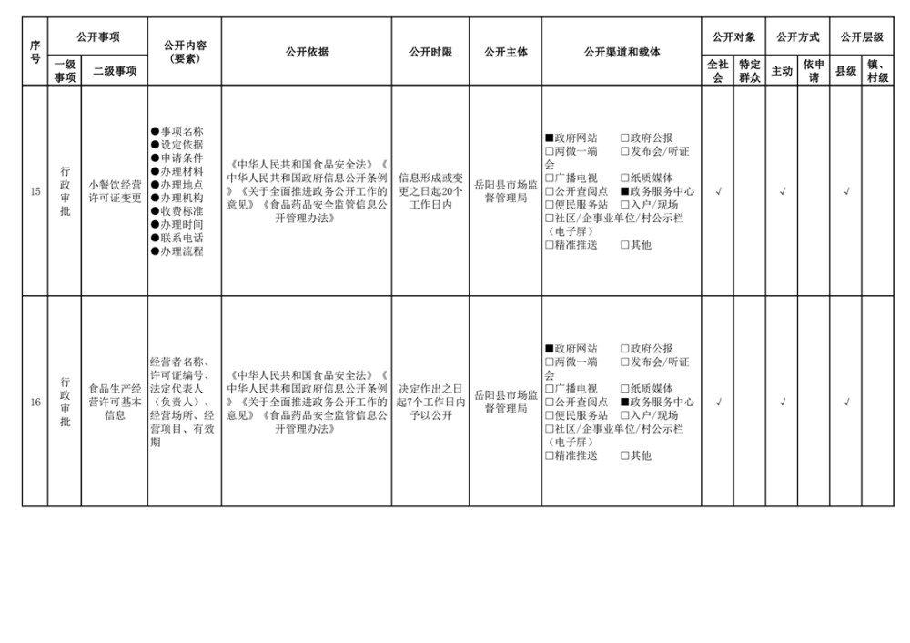 2024年嶽陽縣食品藥品領域基層政務公開標準目錄