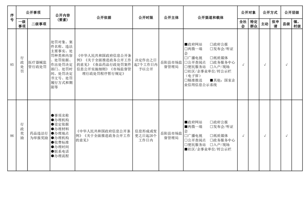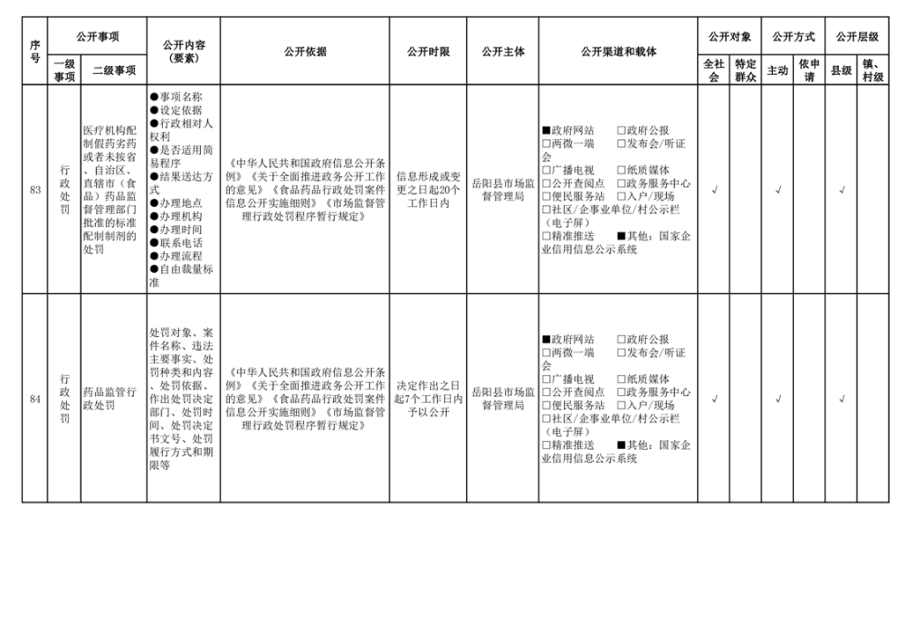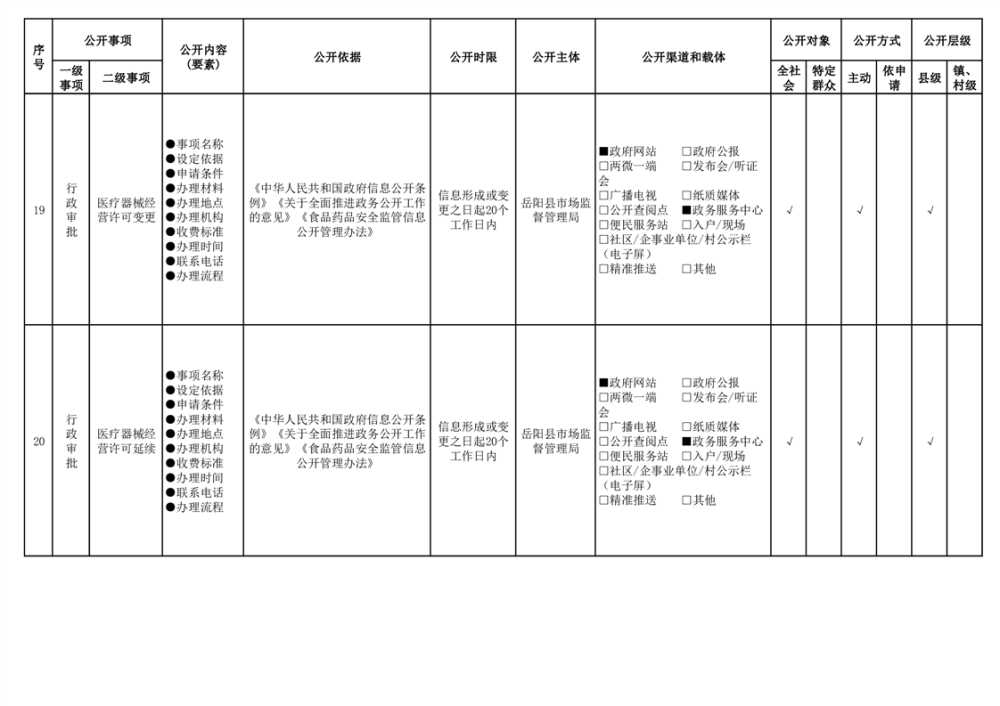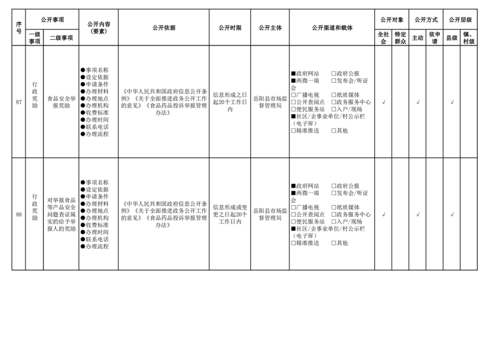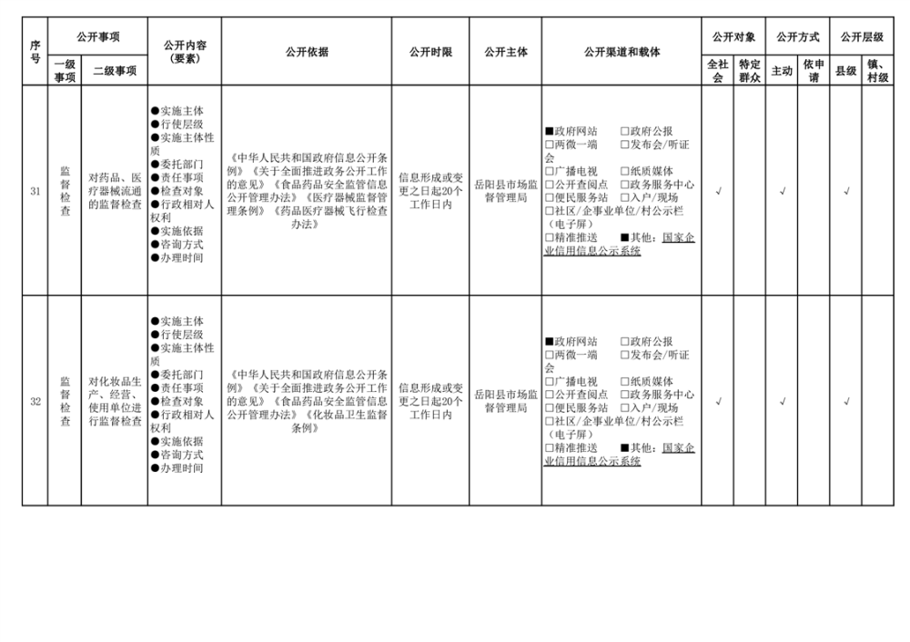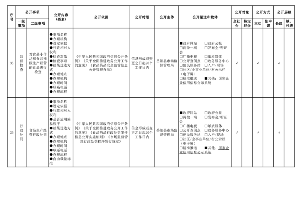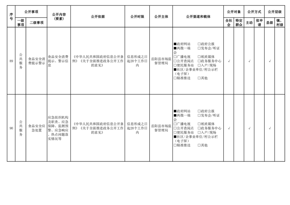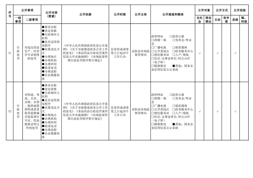 2024年嶽陽縣食品藥品領域基層政務公開標準目錄