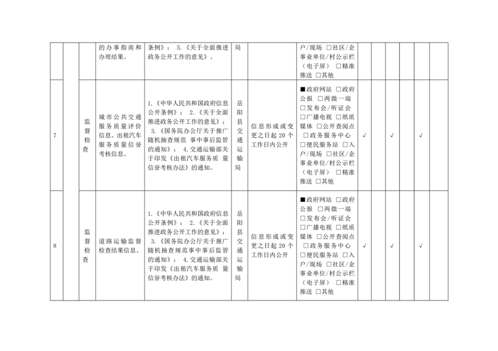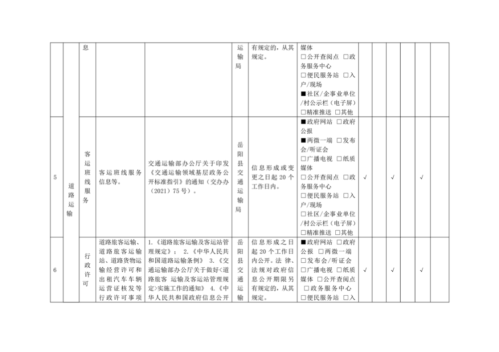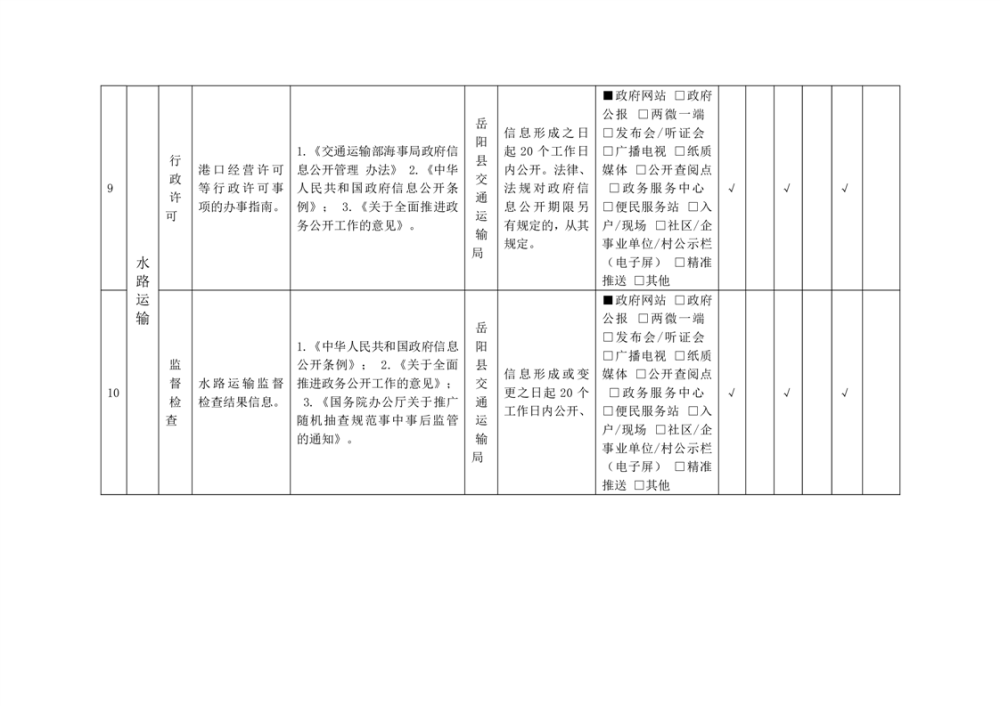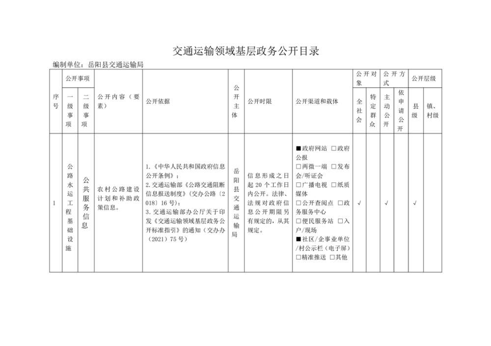 嶽陽縣交通運輸領域基層政務公開事項目錄