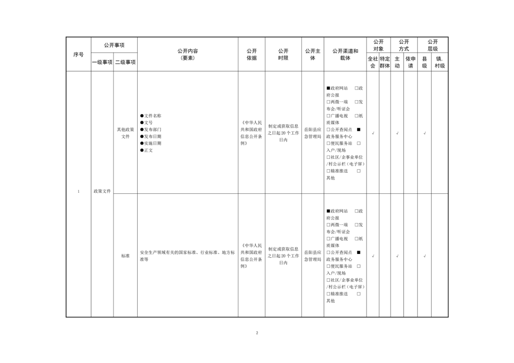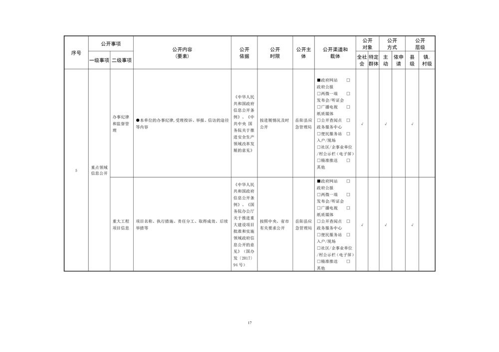 2024年安全生產領域基層政務公開事項目錄