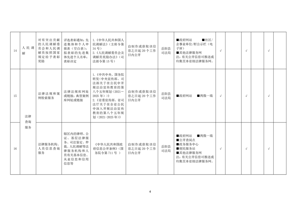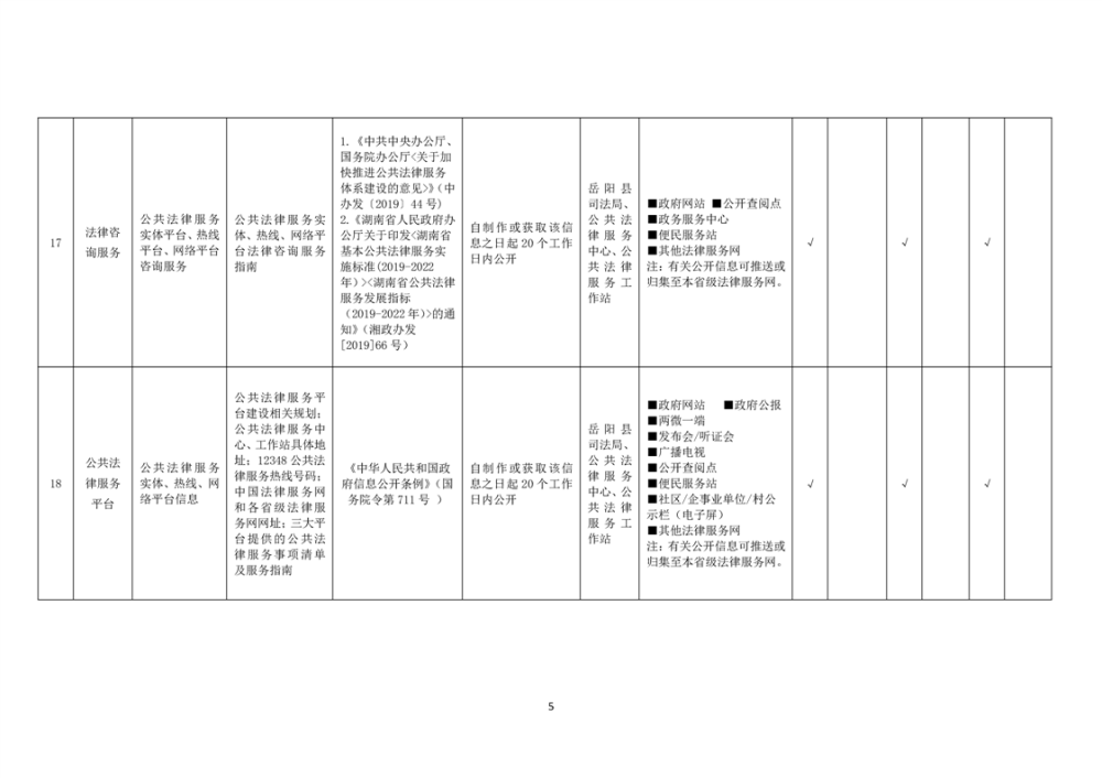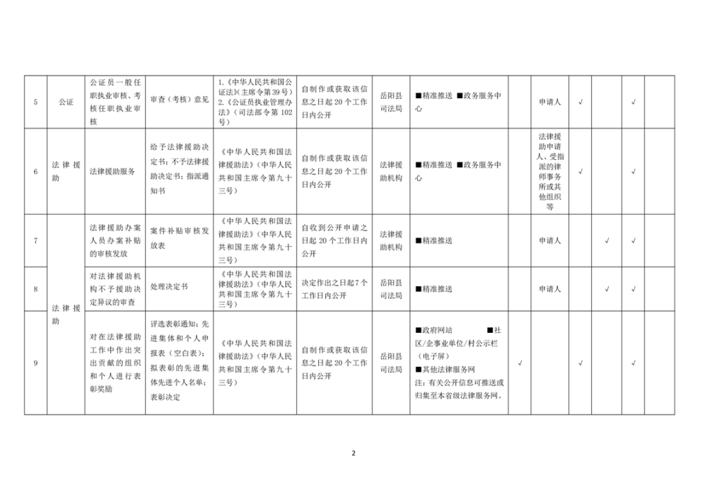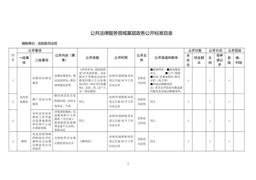 嶽陽縣公共法律服務領域基層政務公開標準目錄