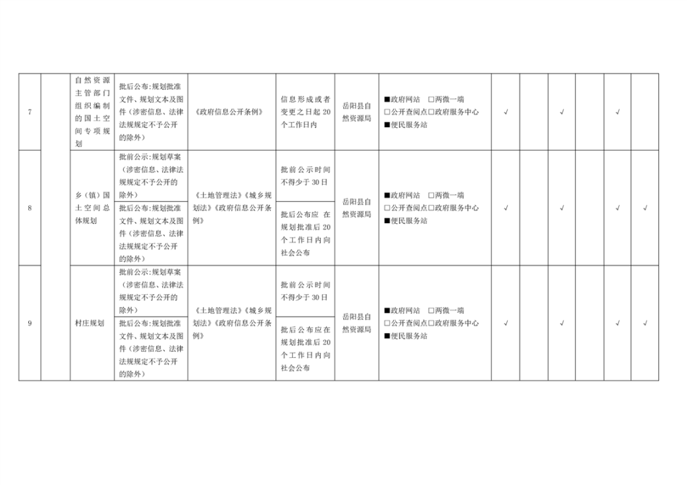 嶽陽縣城鄉規劃領域基層政務公開標準目錄