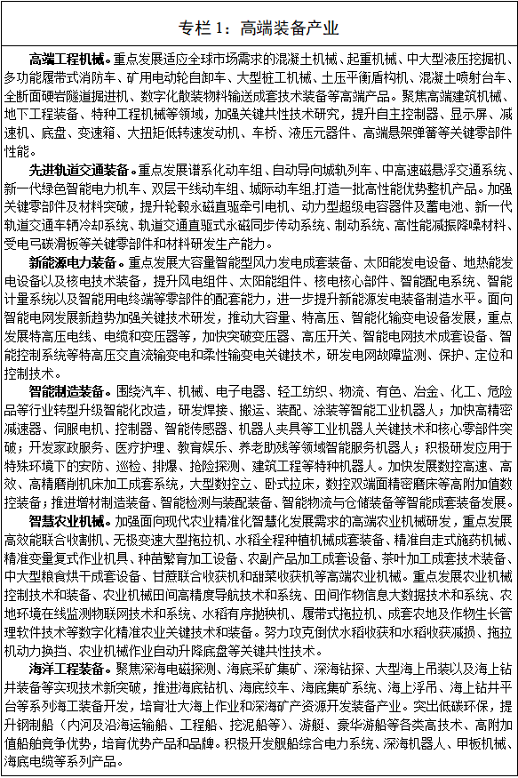 新能源電力裝備、智能製造裝備、智慧農業機械以及海洋工程裝備等領域,加快關鍵技術研發和重點產品推廣應用,推動形成產業鏈條完備、集聚程度高、規模效應突出的優勢產業集群。