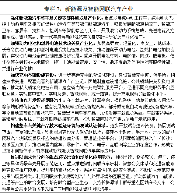 積極培育智能網聯汽車產業生態。推動汽車、信息通信、人工智能、互聯網等領域骨幹企業加強合作,聯合開展基礎共性交叉技術的研發。進一步加強國家智能網聯(長沙)測試區、湖南(長沙)國家級車聯網先導區建設,推動形成一批具有國內先進水平的智能網聯汽車整車及關鍵零部件企業,牽頭製定一批國家及行業標準。初步建成具有較強國內競爭力的產業集聚區,構建具有較強吸引力的產業生態,加快推動產業結構由生產製造基地向創新研發高地轉型,打造國內重要的新能源及智能網聯汽車創新與產業基地。