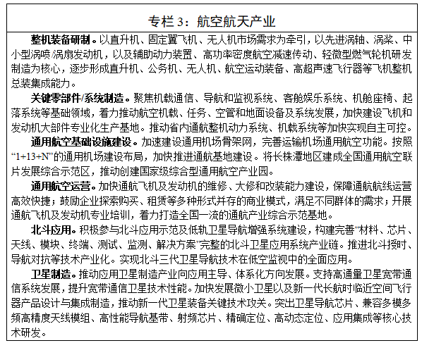 以深化推進全域低空空域管理改革試點為契機,集中優勢資源加快中小航空發動機和通航整機研發製造,著力構建具有湖南特色的“通航整機研發製造+中小航空發動機研發製造+關鍵零部件製造+通航運營”全產業鏈協同發展新模式,樹立國家通用航空產業綜合示範區標杆,打造世界一流的中小航空發動機產業集群。