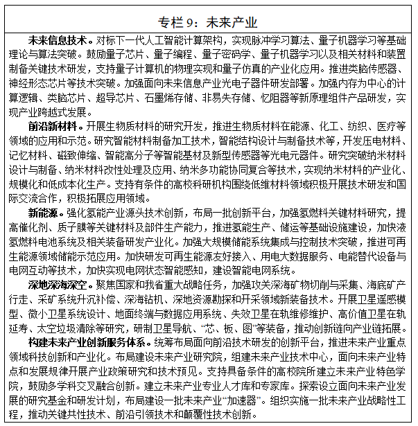 積極布局適應未來產業發展需求的創新平台與科技基礎設施。加強未來產業人才引育,打造開放、包容的創新環境,鼓勵研究人員自由探索。加強引導支持,推進前沿技術轉化應用和迭代發展。