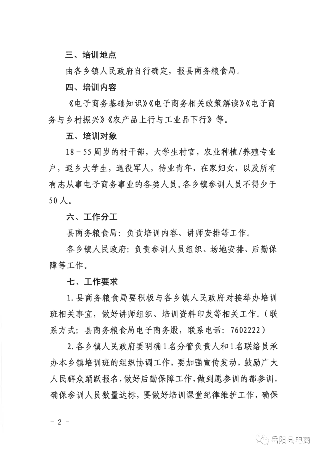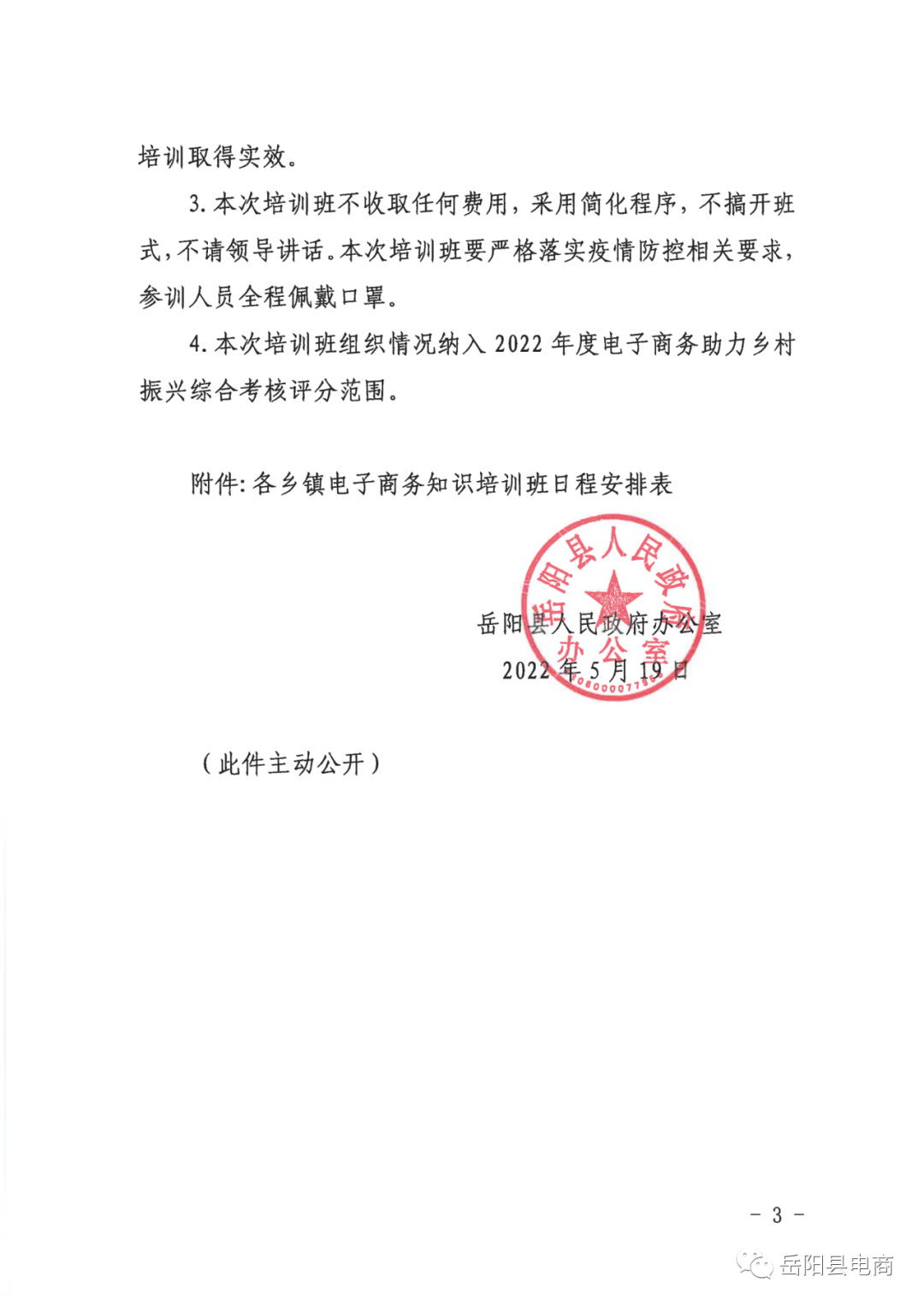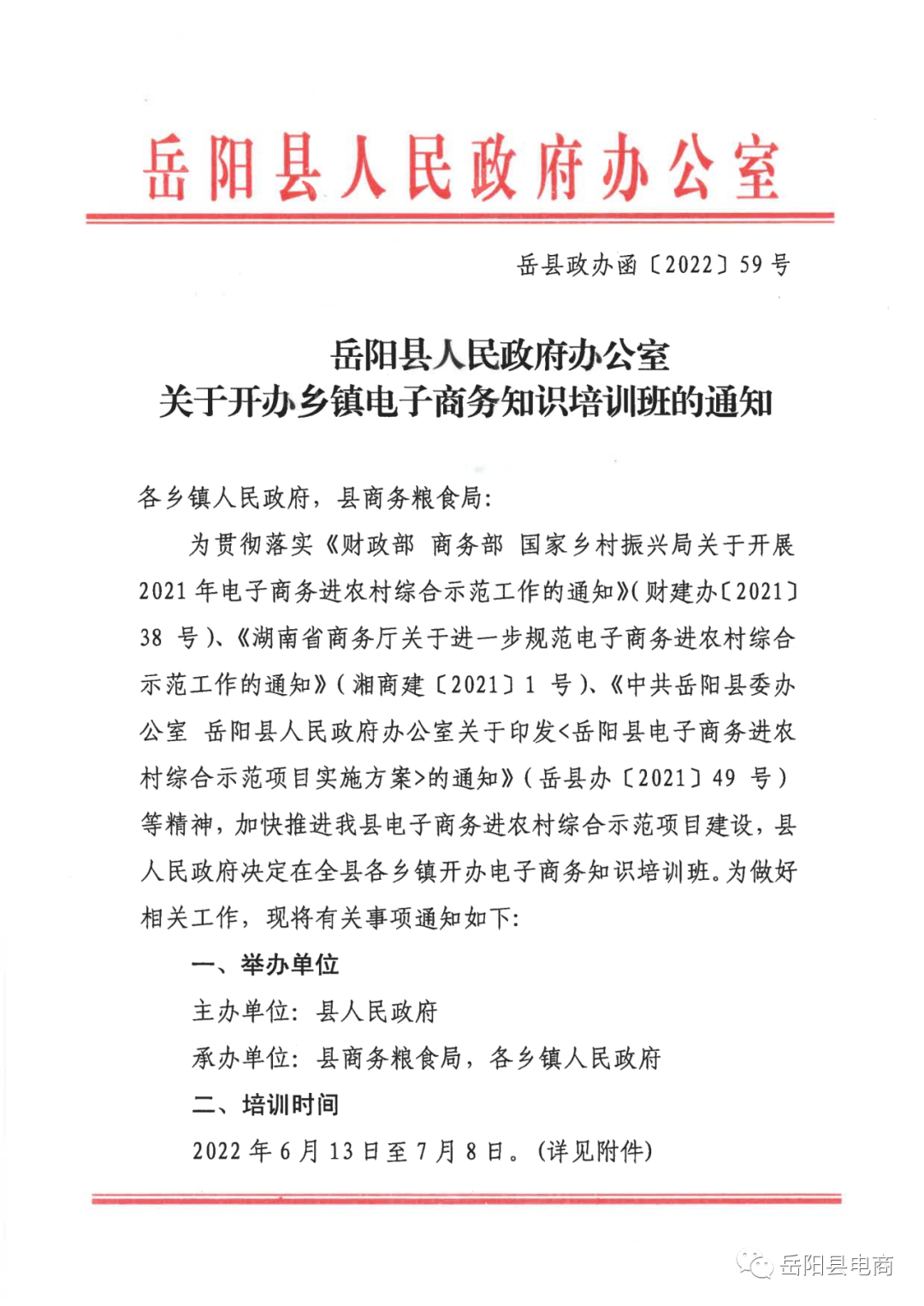嶽陽縣人民政府辦公室關於開辦鄉鎮電子商務知識培訓班的通知