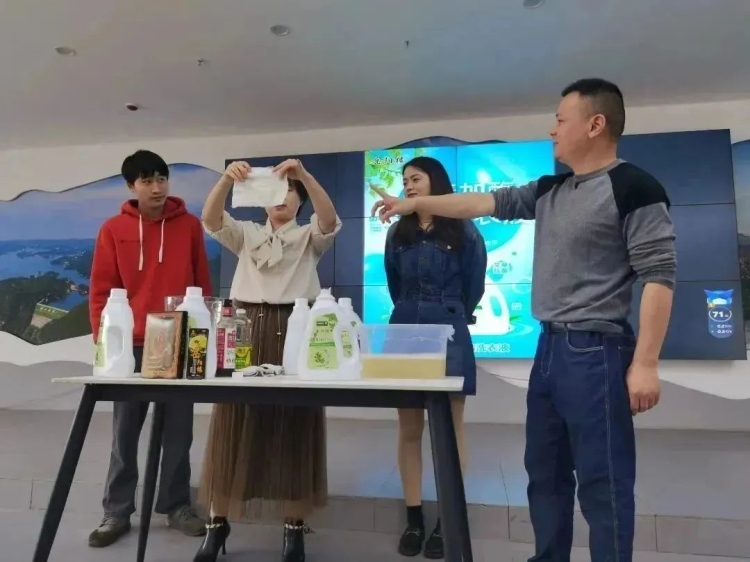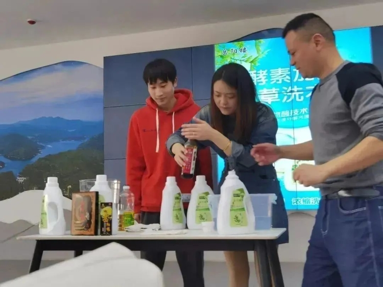 嶽陽市翻天應生物科技有限公司嶽陽縣分公司是一家嶽陽本土的規模企業,主營範圍包括二類醫療器械,保健器械,保健用品,日用化妝品和日用百貨。這次培訓會上該公司帶來了他們的主打品牌“嶽陽樓”洗衣液,在培訓中通過現場操作的方式直觀地展示的該產品的優勢,引起了各站長強烈的興趣。