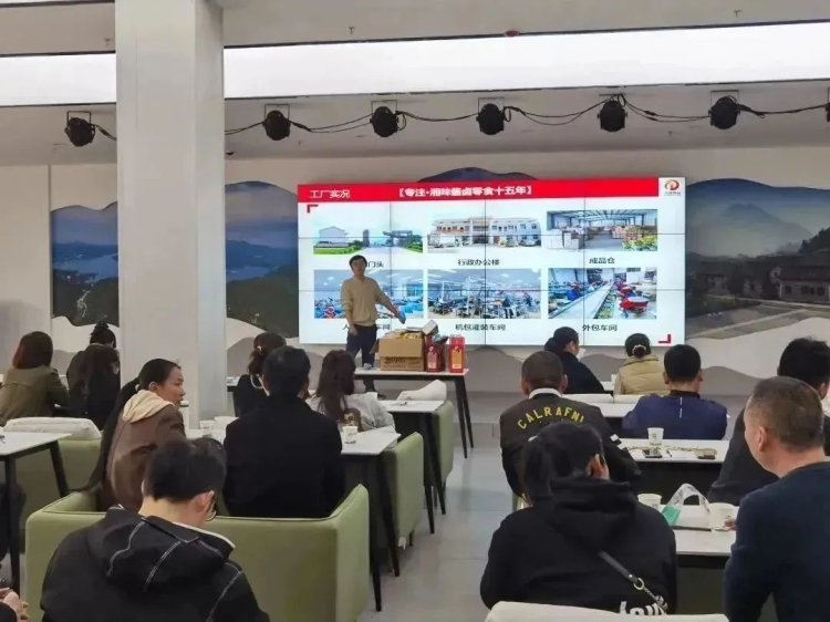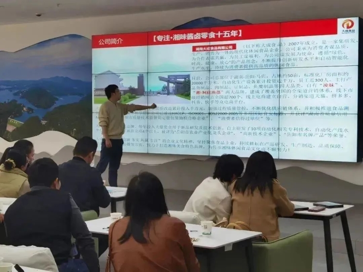 嶽陽縣大成食品有限公司2007年8月成立。是一家專業從事風味魚製品、銷售,肉製品(醬鹵肉製品)加工、銷售的企業。一直以來該公司秉承以:“高標準的產品質量和真誠的服務”為企業宗旨、以“誠心善良、求實創新”為企業精神和以“以人為本、科技創新”為經營理念,以“打造品牌特色”為企業願景。該公司多次獲得“先進單位”“名牌產品”“誠信經營戶”等榮譽。在本次培訓會上,他們的負責人不僅帶來了許多零食產品和電商技巧,並且帶來了一份特別有誠意的邀請函。邀請在場的站點負責人們去到嶽陽縣新開鎮大成食品廠房,請他們去做客同時也是去考察,去了解大成食品好味道背後高標準的產品質量。