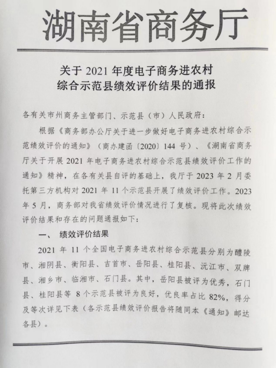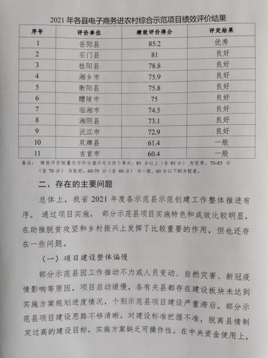 關於2021年度電子商務進農村綜合示範縣績效評價結果的通報