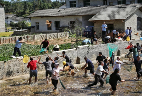 趣味農活比賽環節中,鎮村幹部開展了割禾比賽和打禾比賽,廣大群眾、遊客參與了稻田抓魚、抓雞等活動,讓大家在輕鬆愉悅的氛圍中深度體驗田間樂趣,同時也將喜慶的氛圍推向了最高潮。