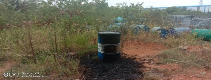 嶽陽市生態環境嶽陽縣分局委托湖南瀚洋環保科技有限公司按危險廢物處置程序對查獲的廢包裝桶、廢礦物油等危險廢物進行應急處置。