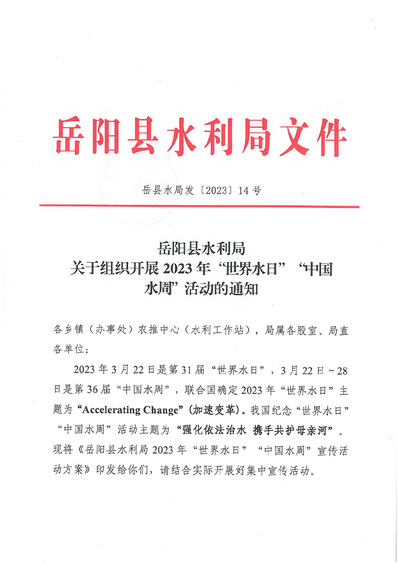 關於組織開展2023年“世界水日”“中國水周”活動的通知
