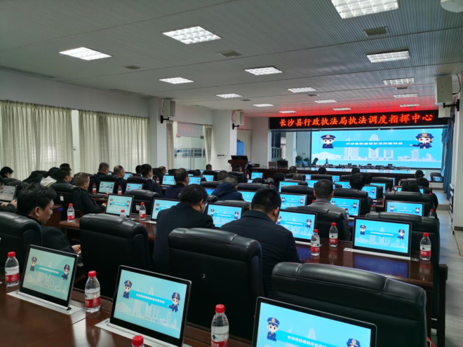 培訓班一行先來到長沙縣行政執法局,工作人員介紹了長沙縣行政執法局了綜合執法改革情況,隨後在長沙縣行政執法局指揮調度中心,工作人員現場詳細介紹了該局的執法辦案係統、陽光執法公示係統、遠程指揮調度係統、電子監察係統、無人機巡查係統、辦公自動化係統的工作方式和運行情況。在隨後召開的座談會上,雙方就“一支隊伍管執法”的運行情況、行政執法局與管理部門、街鎮職責職能劃分情況,行政執法局日常辦案的立案、流轉、審批、監督等情況進行交流與探討。