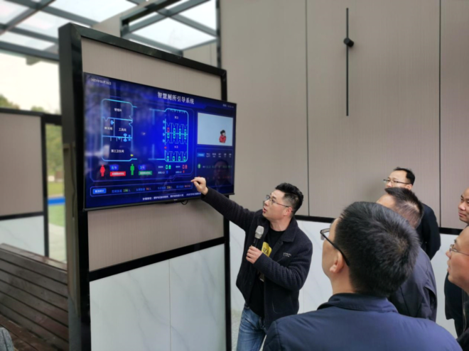 隨後,培訓班一行人在長沙縣城市管理局工作人員的帶領下,先後參觀了長沙縣智慧公廁和星沙驛站,充分感受長沙縣通過數字賦能提升治理能力,打造智慧城管,構建“城管+大數據”管理體係的優勢之處。在長沙縣城市管理局指揮調度中心,工作人員現場演示該局信息化建設情況,該局通過“互聯網+執法”,提升執法效率,令培訓班感受頗深。