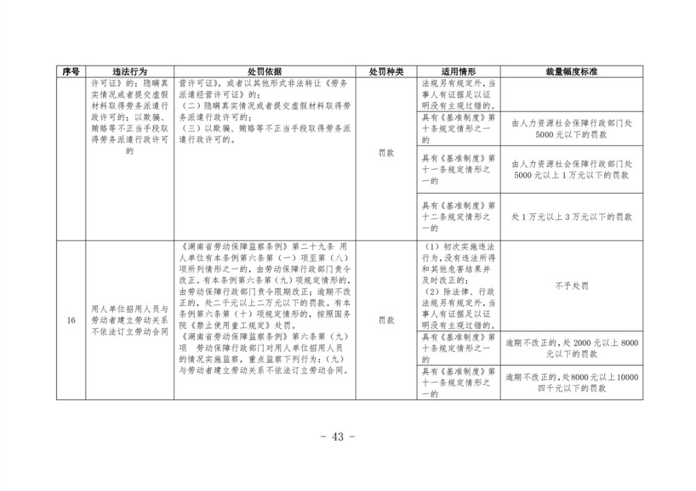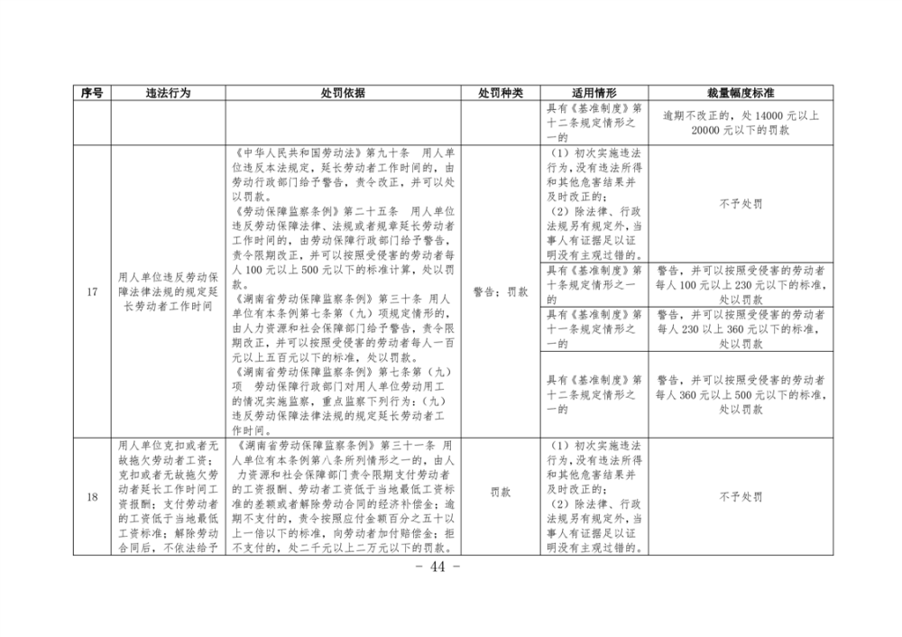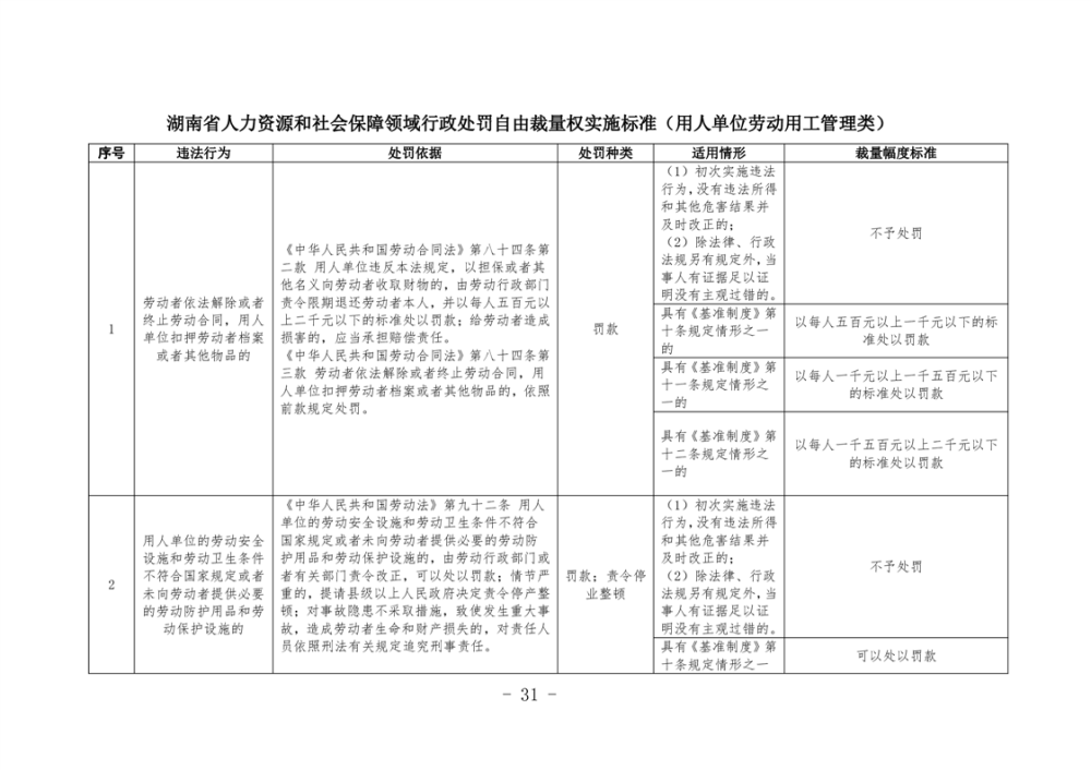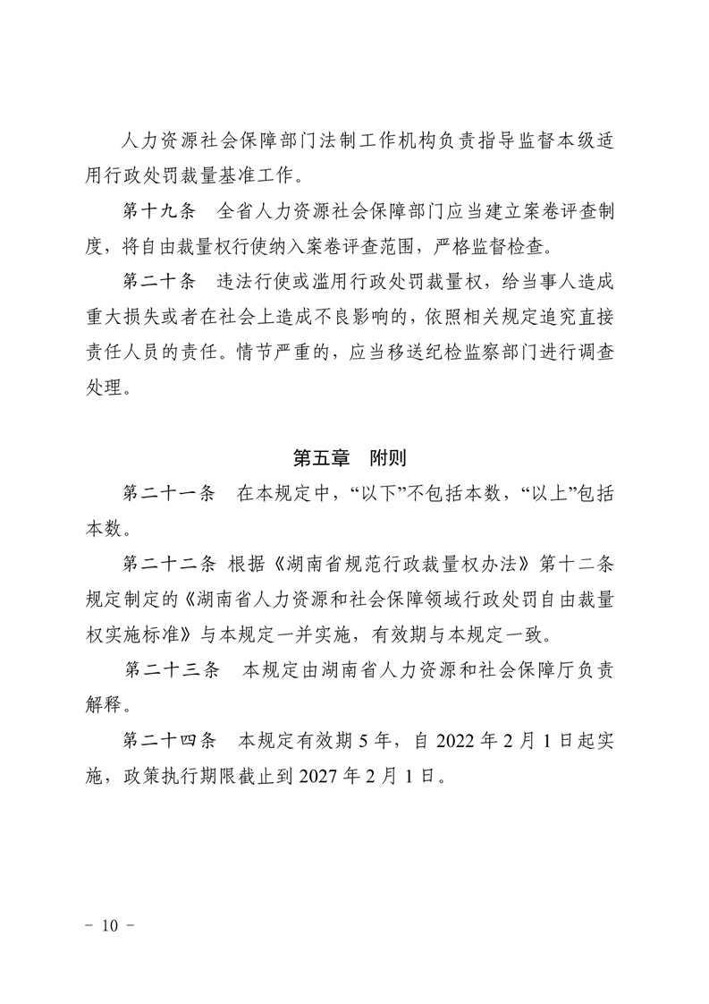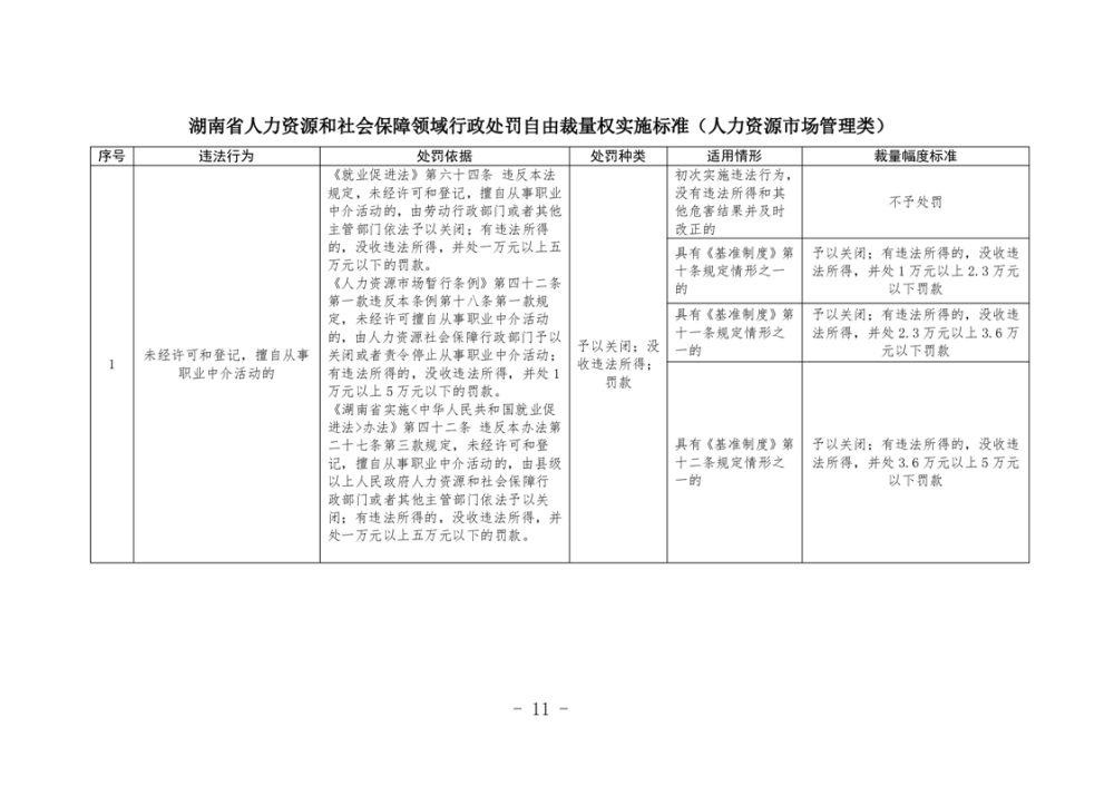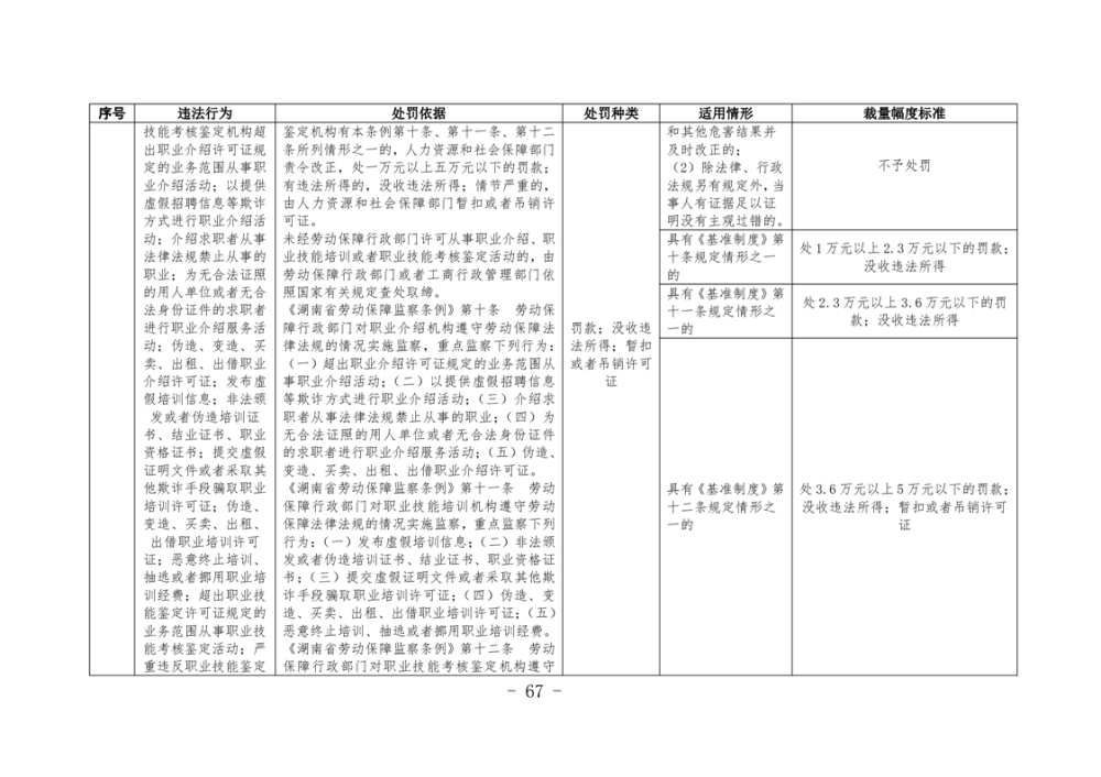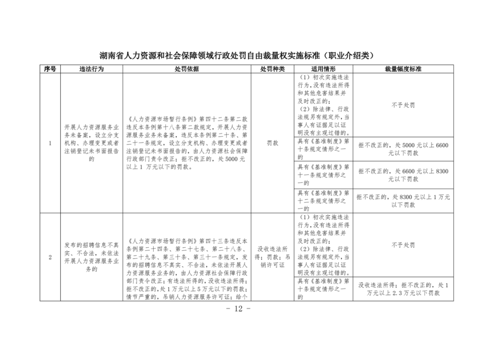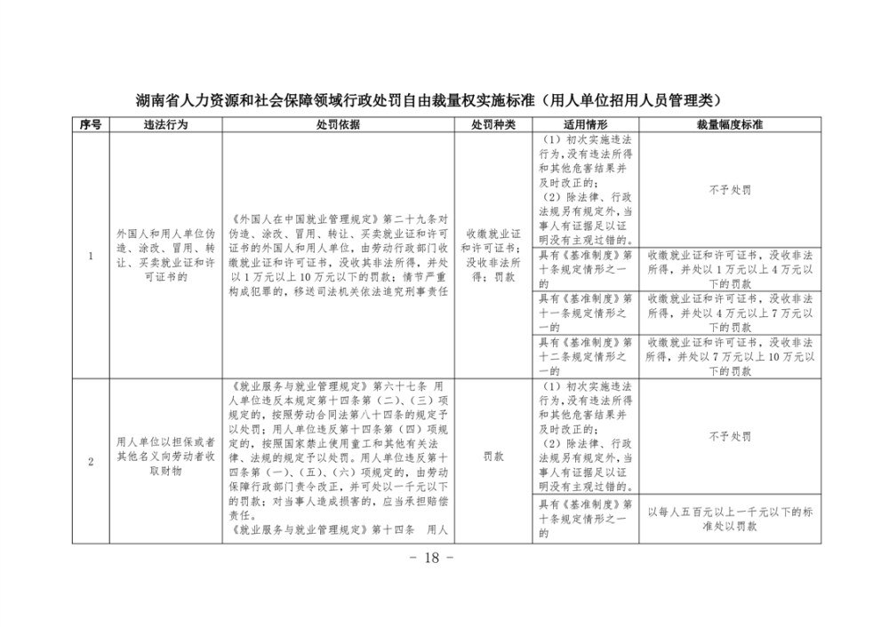 《湖南省人力資源和社會保障領域行政處罰自由裁量權基準製度》和《湖南省人力資源和社會保障領域行政處罰自由裁量權實施標準》